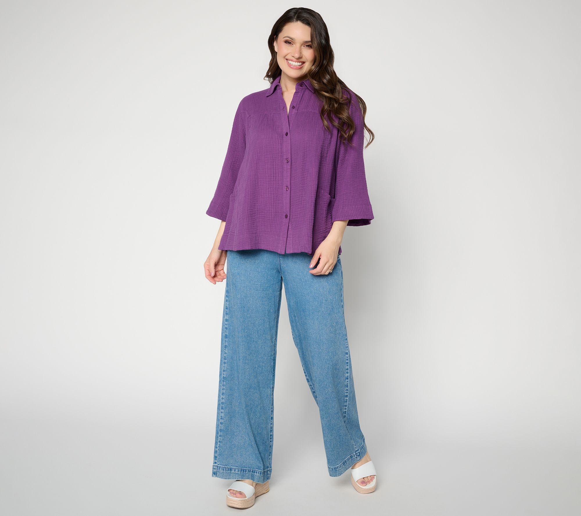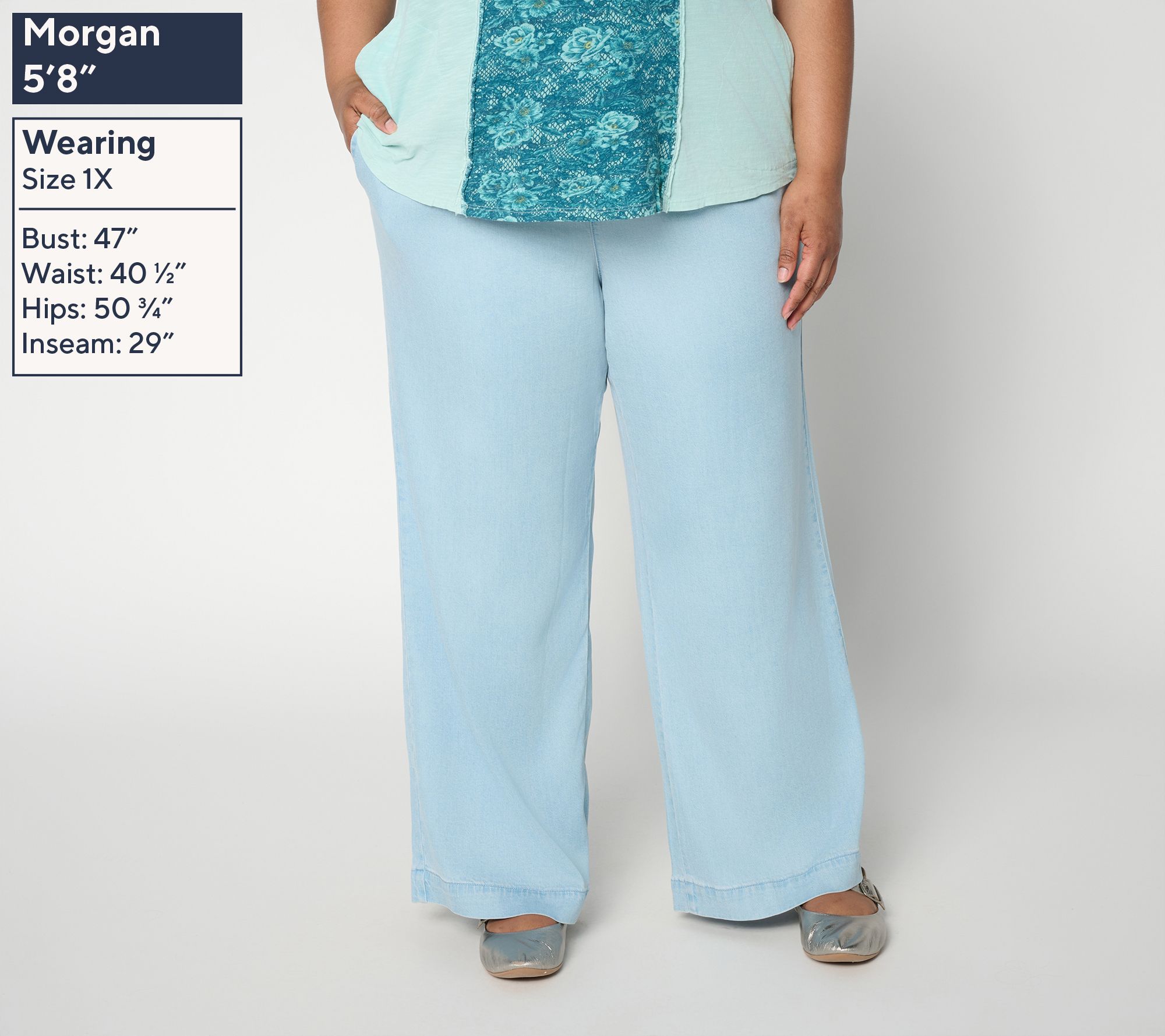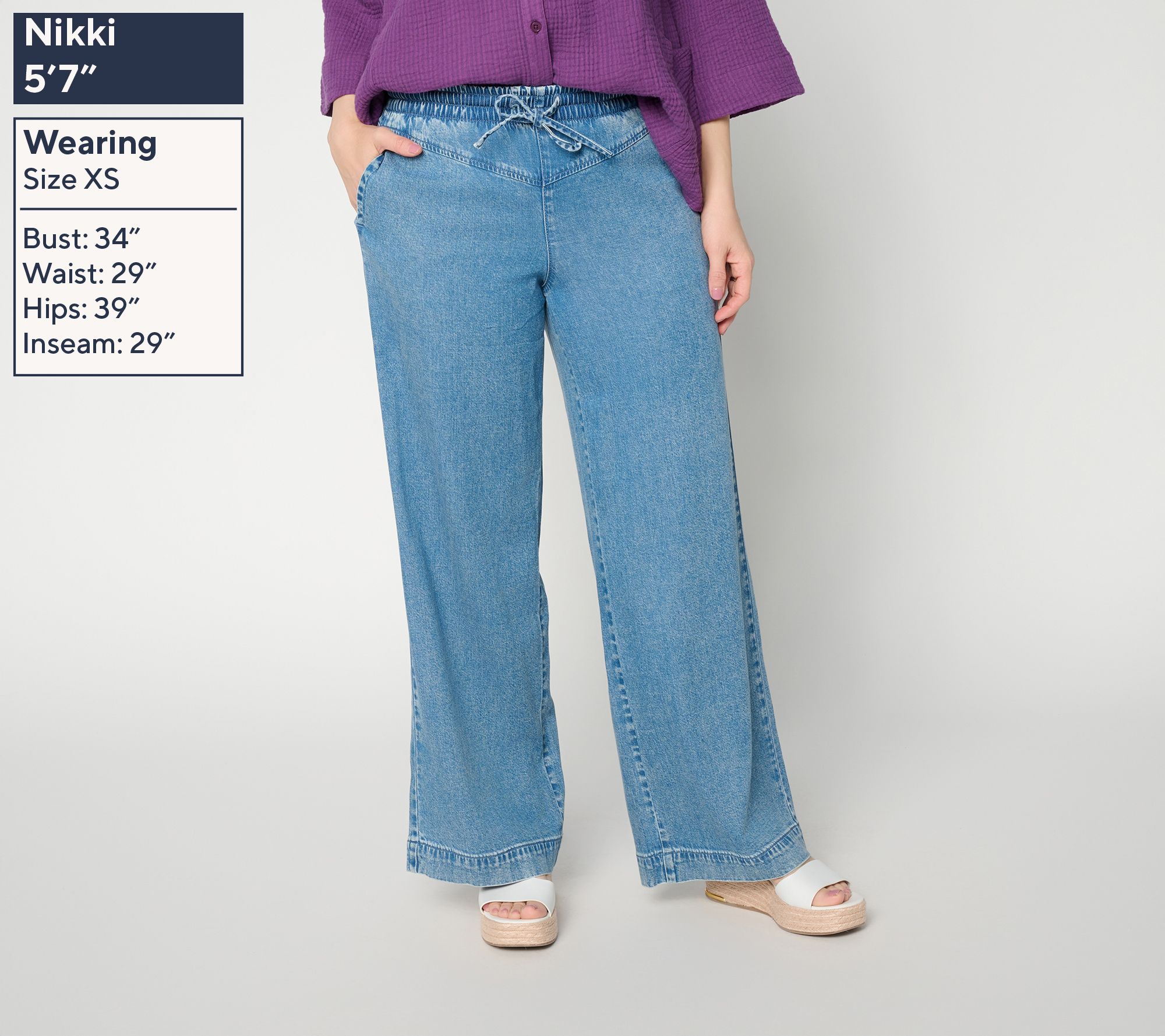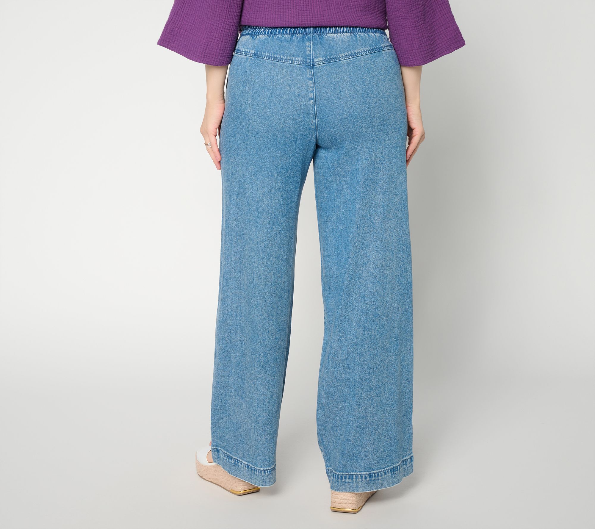 Slip into these elegant wide-leg jeans for effortless style that moves from busy mornings to casual evenings. The pin-tuck waistband and wide hems create a tailored look that's easy to dress up with your favorite blouse or down with a simple tee. From LOGO by Lori Goldstein®.