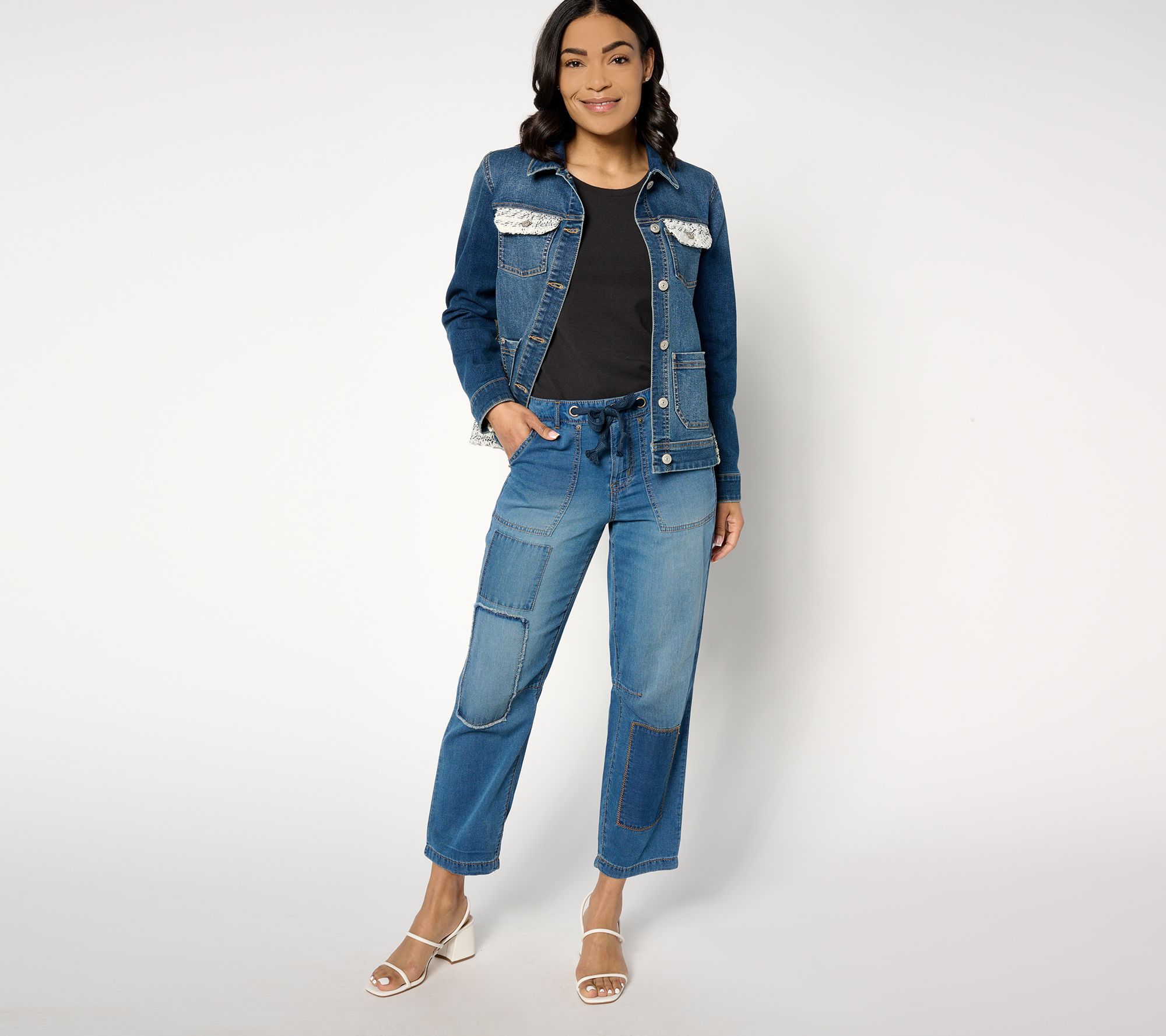These on-trend pants are all about the details -- from the patchwork front to the draw cord to the ankle length. They're ready for anything your weekend brings your way! From LOGO by Lori Goldstein®.