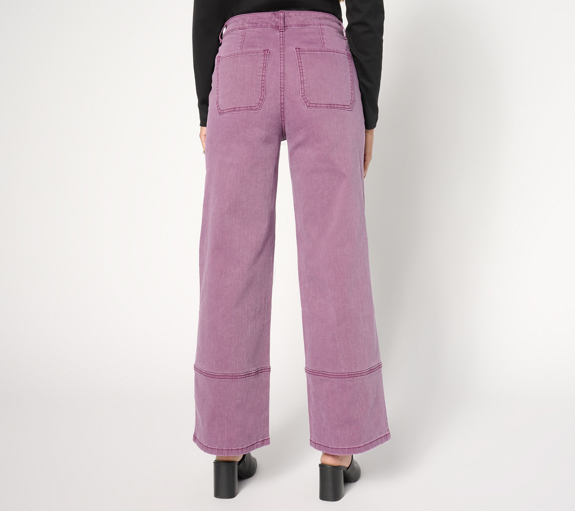 Add some fabulous flair to your casual looks with these twill wide-leg jeans. From LOGO by Lori Goldstein®.