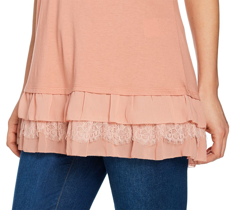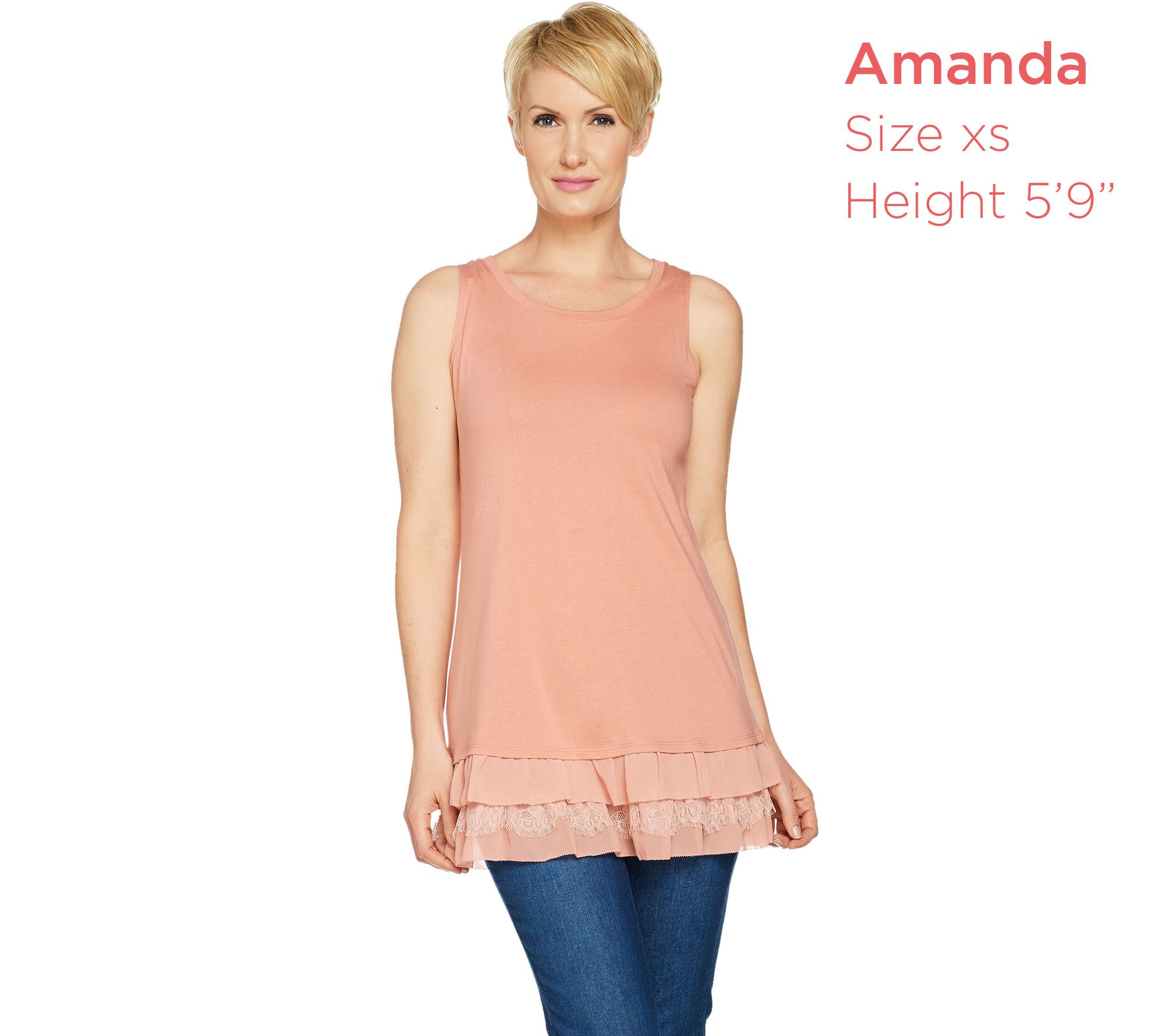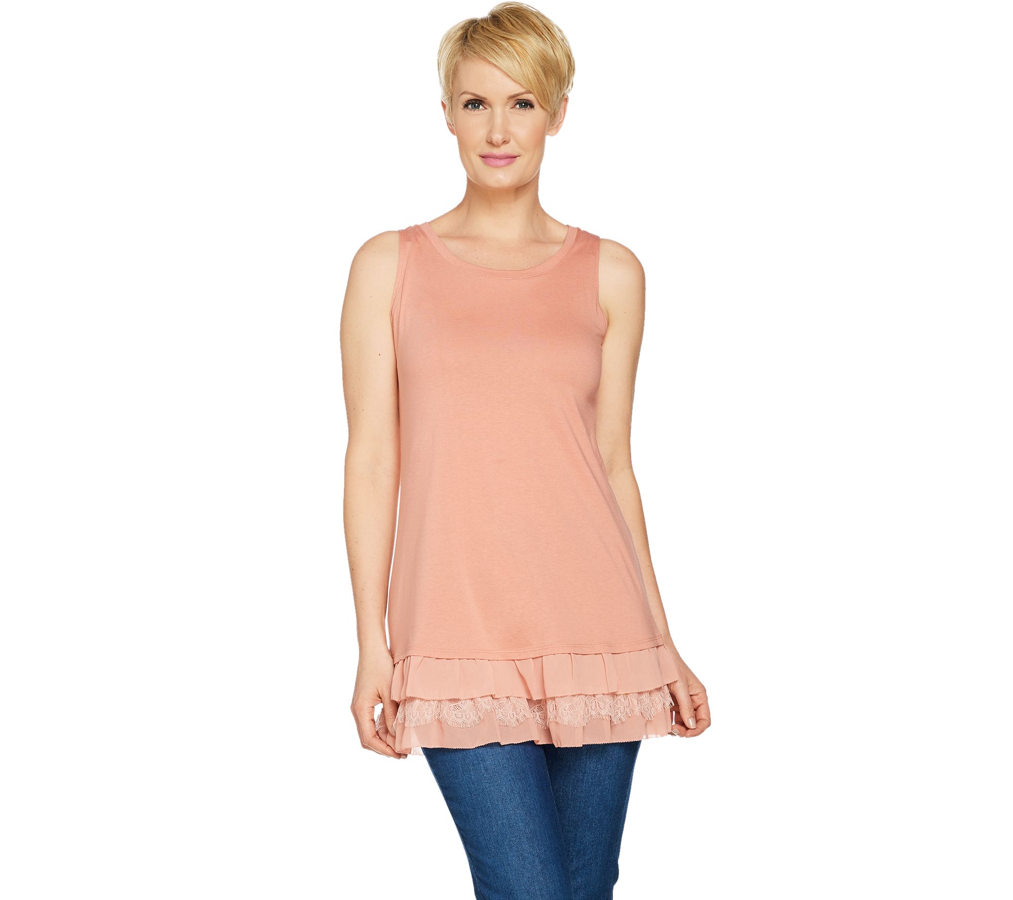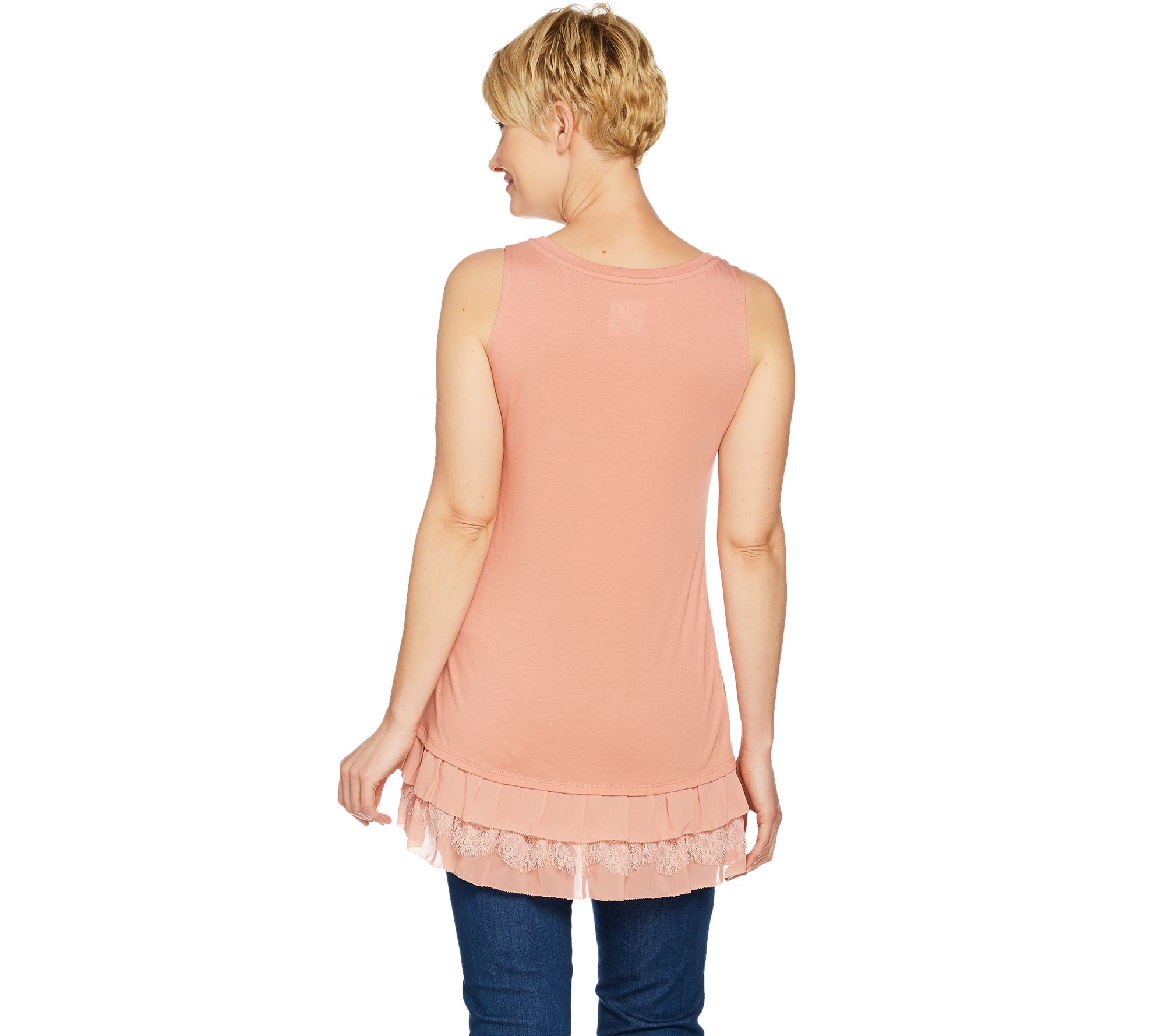 LOGO by Lori Goldstein Solid Tank with Tiered Chiffon & Lace Hem