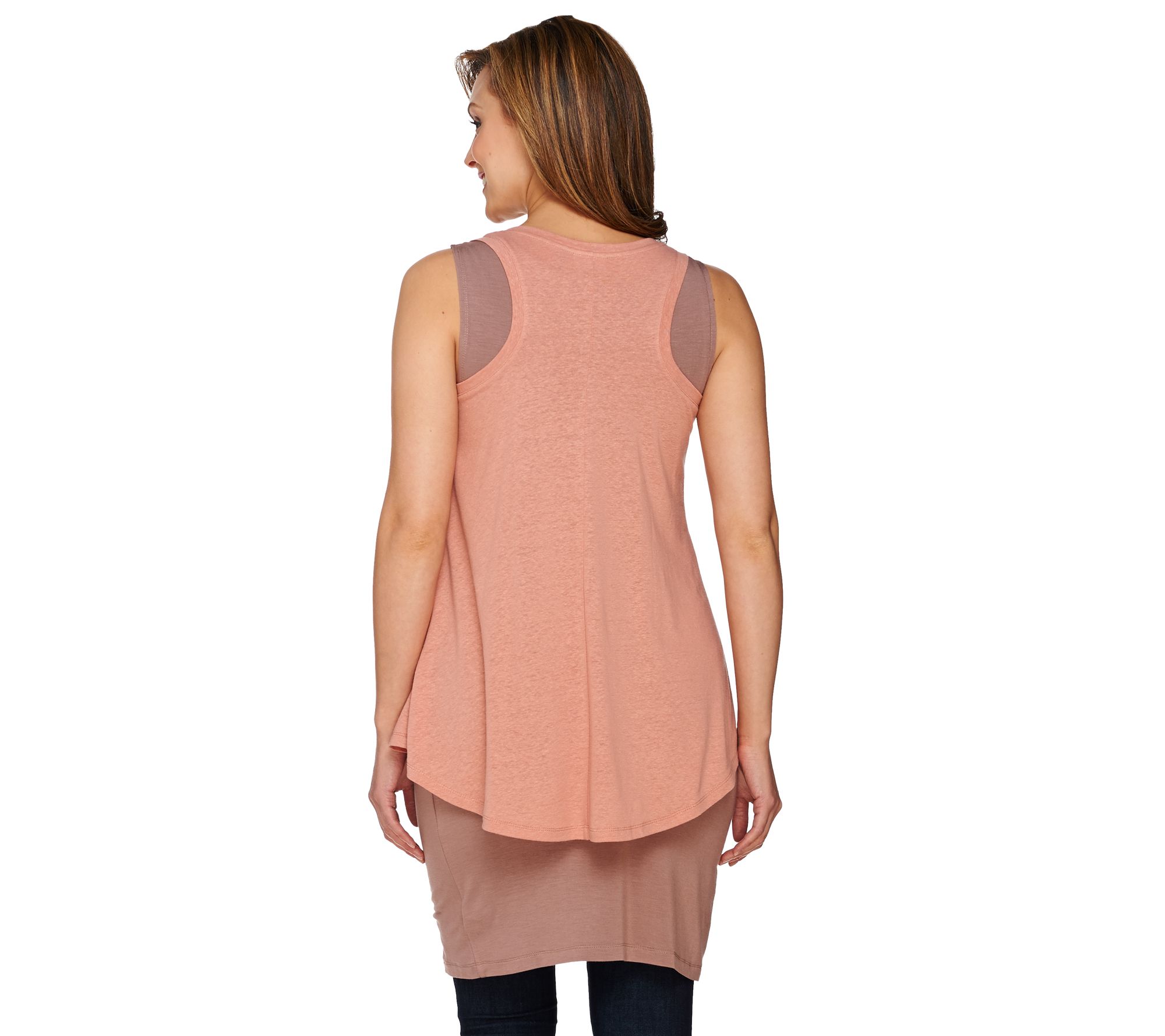 Elevate your style with this LOGO by Lori Goldstein knit tank. A linen overlay gives it an upscale look that pairs perfectly with your favorite leggings. From LOGO by Lori Goldstein(R).
