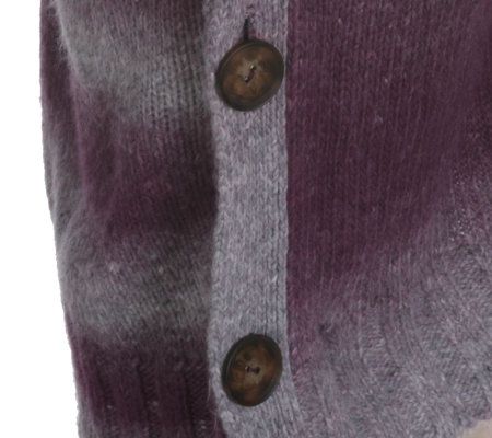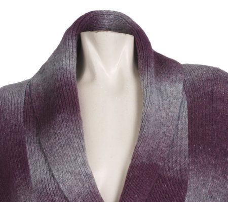 An ombre cocoon sweater is a chic addition to any closet. While the shawl collar adds a cute and casual element, the side button closures really seal the deal. From LOGO by Lori Goldstein.