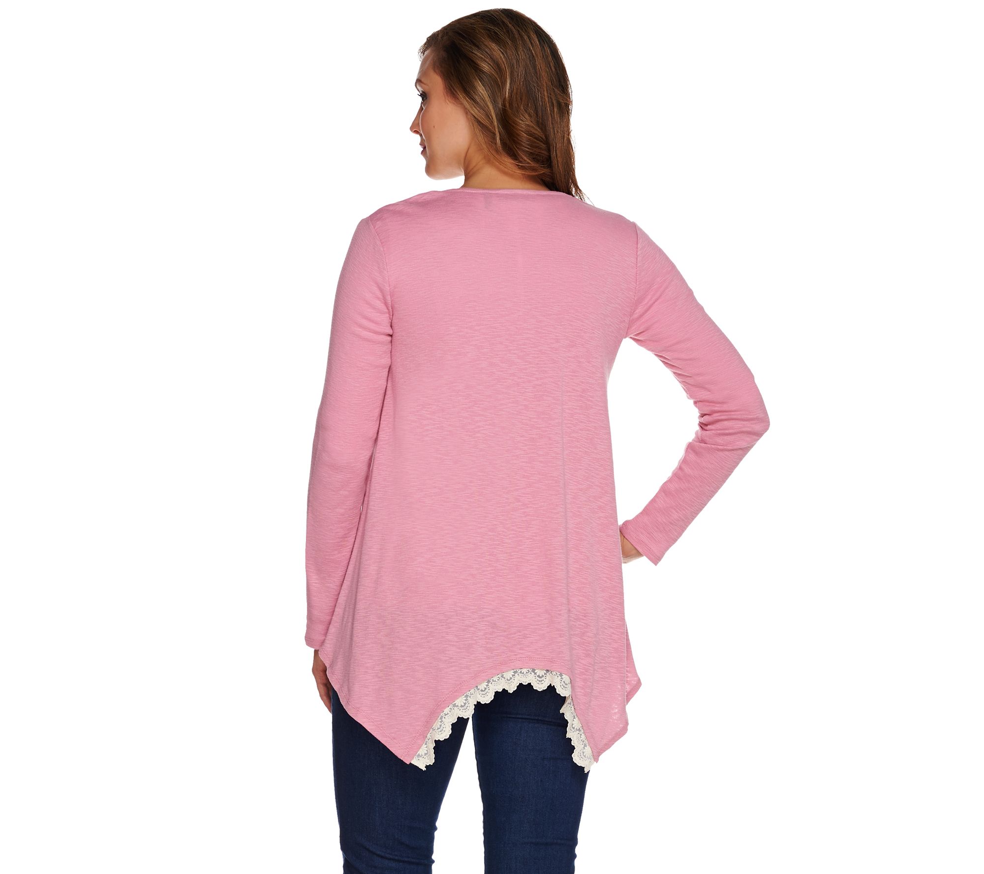 LOGO by Lori Goldstein Sweater Knit Cardigan with Crochet Hem
