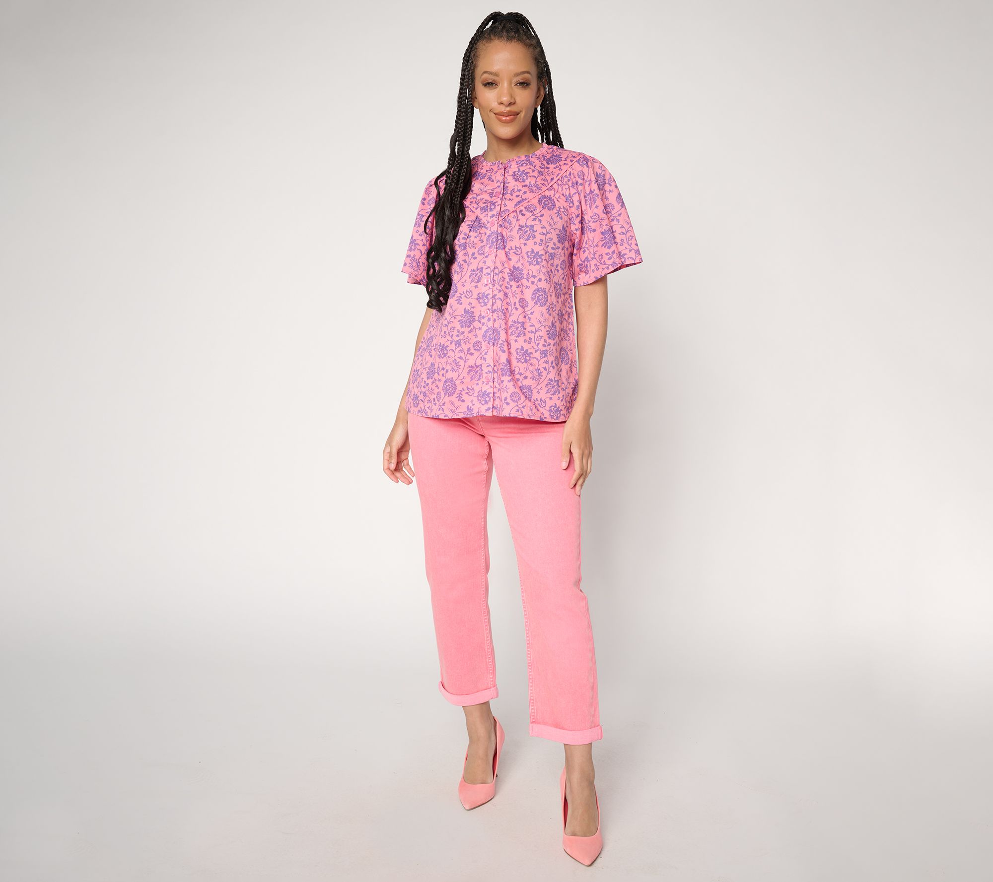 Features: ankle length, boyfriend silhouette, contour waistband, back patch pockets, wear cuffed or uncuffed