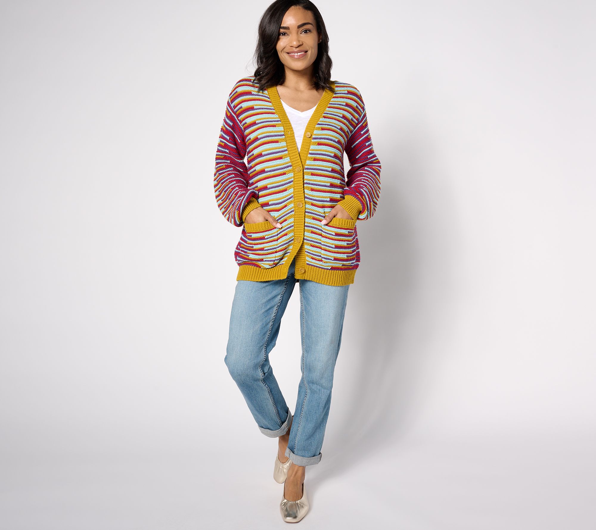 LOGO by Lori Goldstein V-Neck Oversized Cardigan
