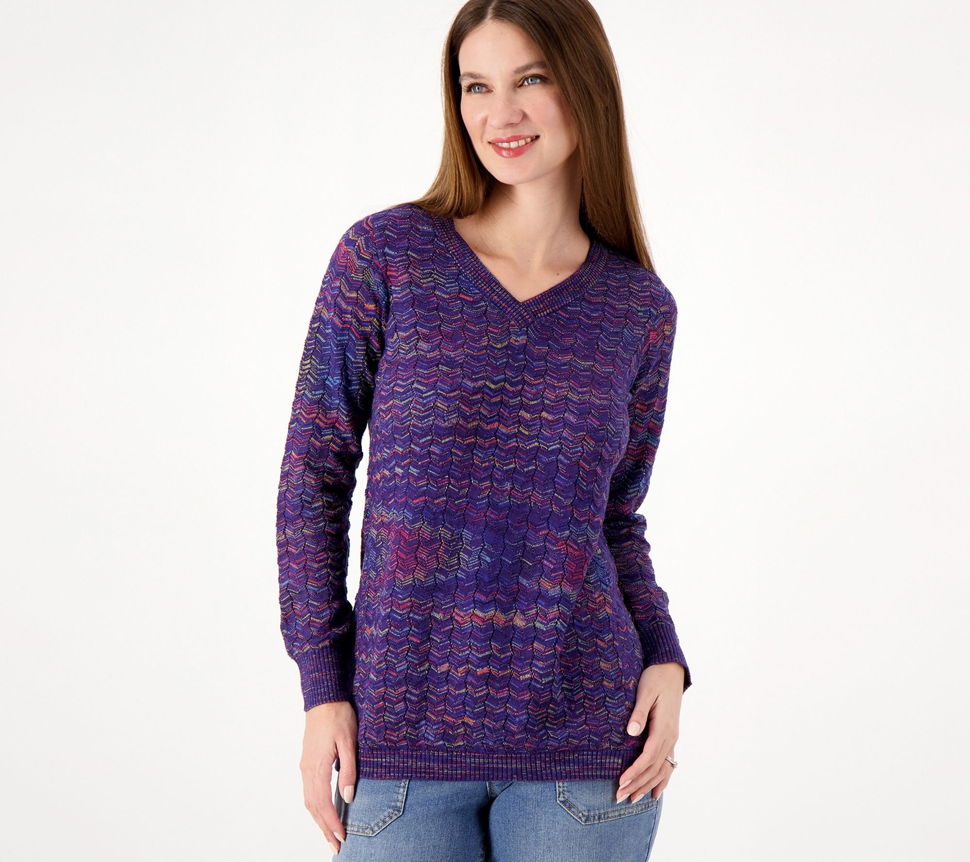 From workday to weekend, this V-neck sweater is ready to take it all on. Pair with cuffed jeans and trainers to your best trousers and patent loafers. (Just keep it within arm's reach in your closet.) From LOGO by Lori Goldstein®.