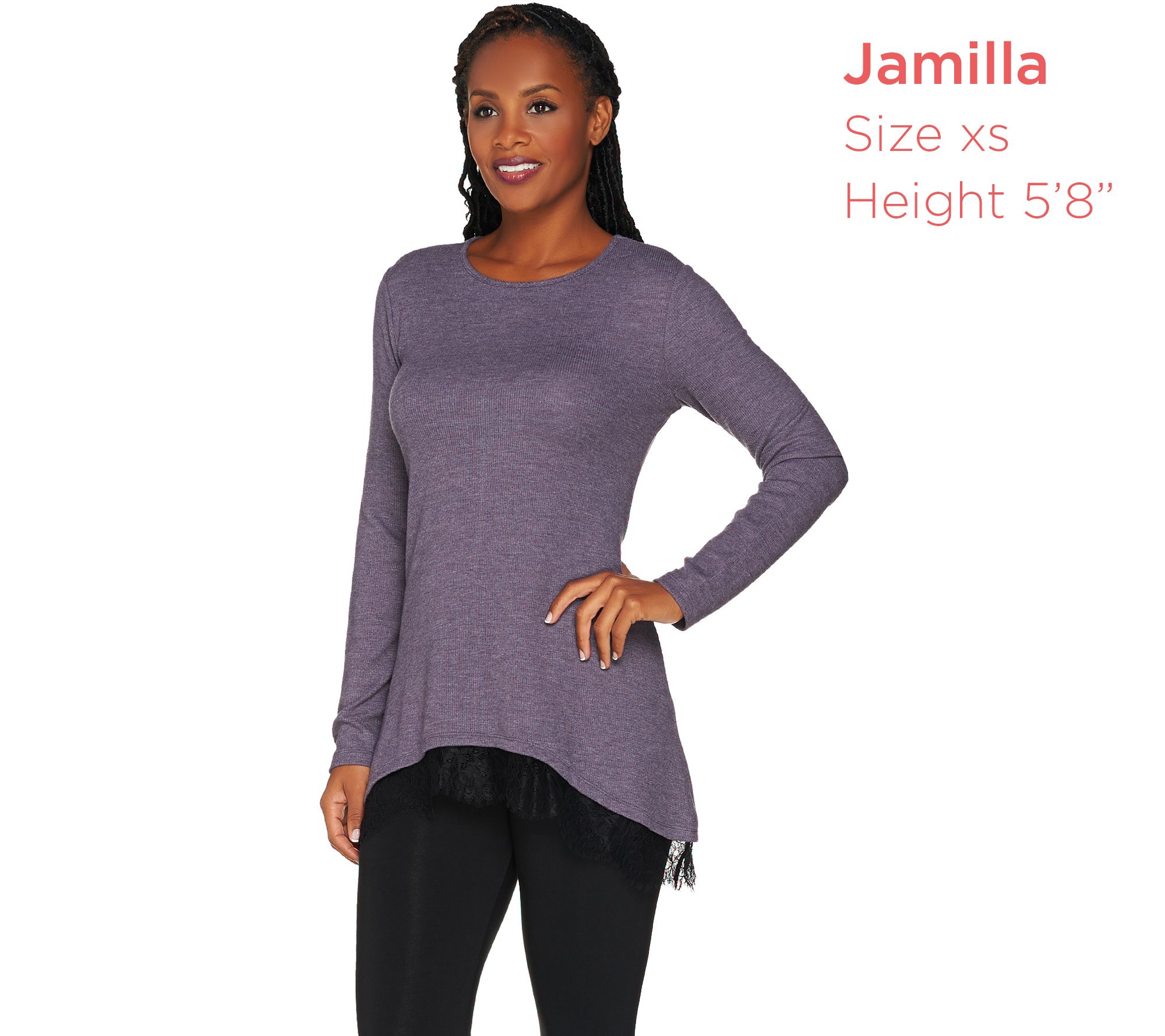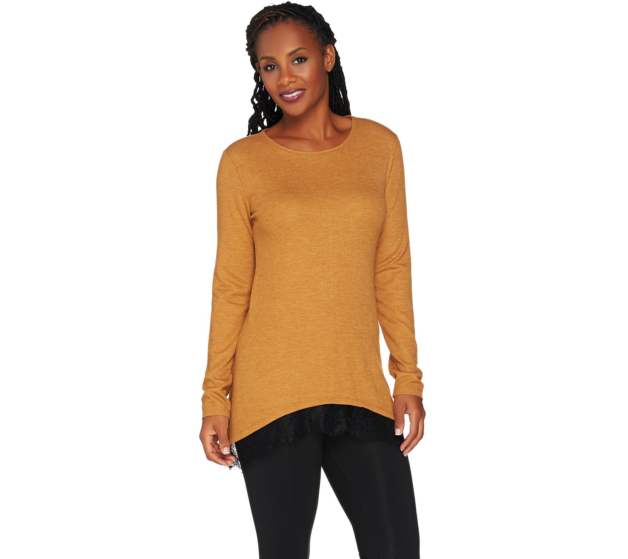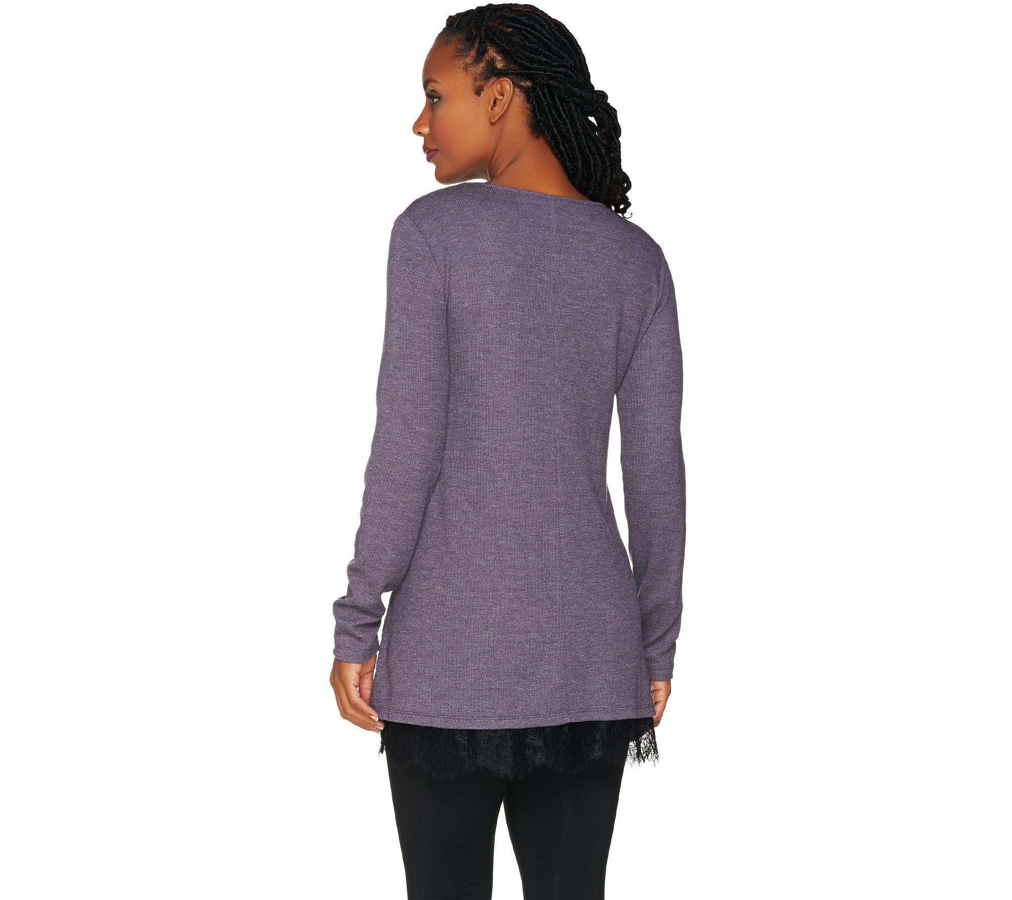 Fashion at its best. This LOGO thermal knit top has all the comfort you love with the style you crave. Lace trim is a feminine finishing touch. From LOGO by Lori Goldstein(R).