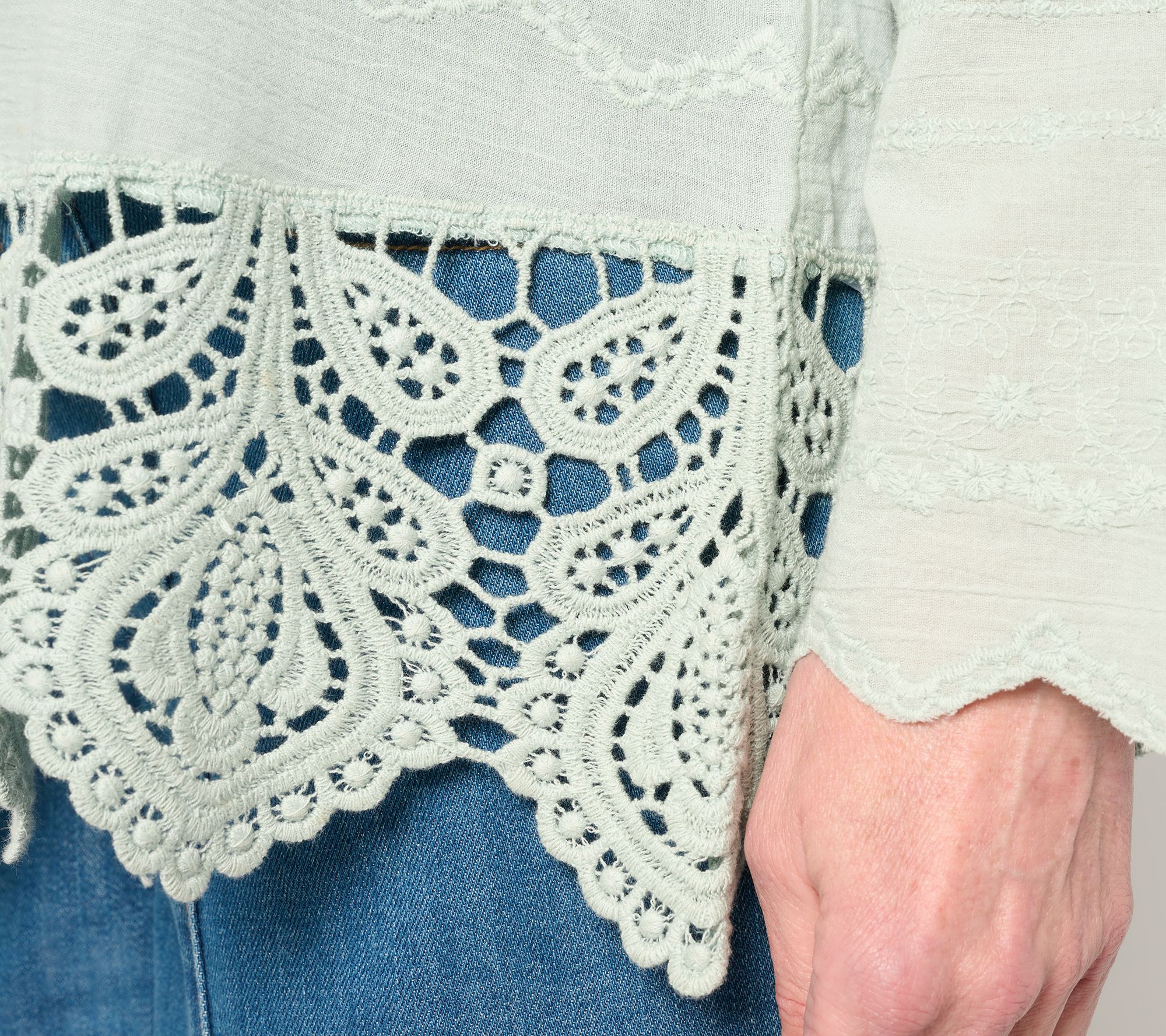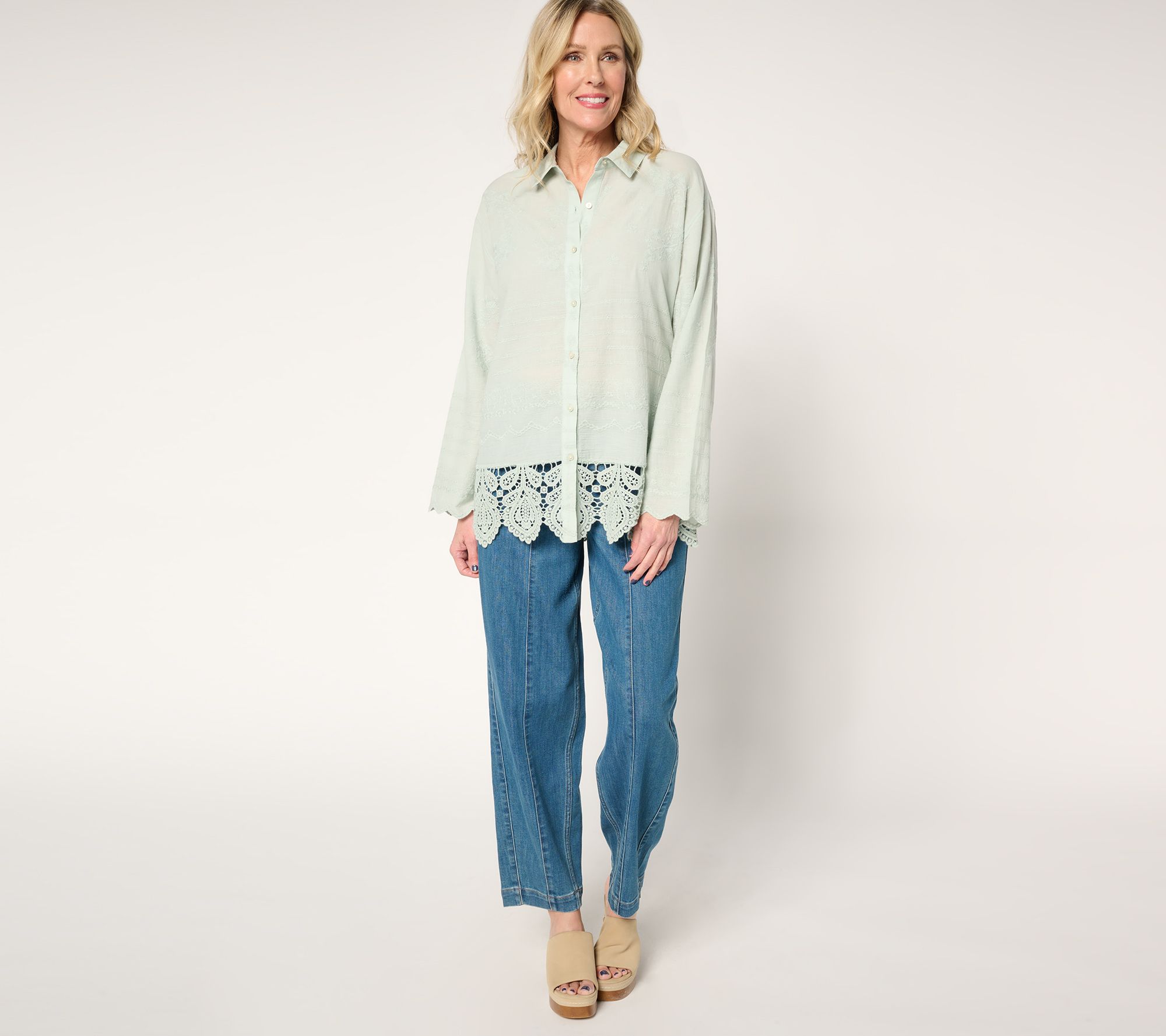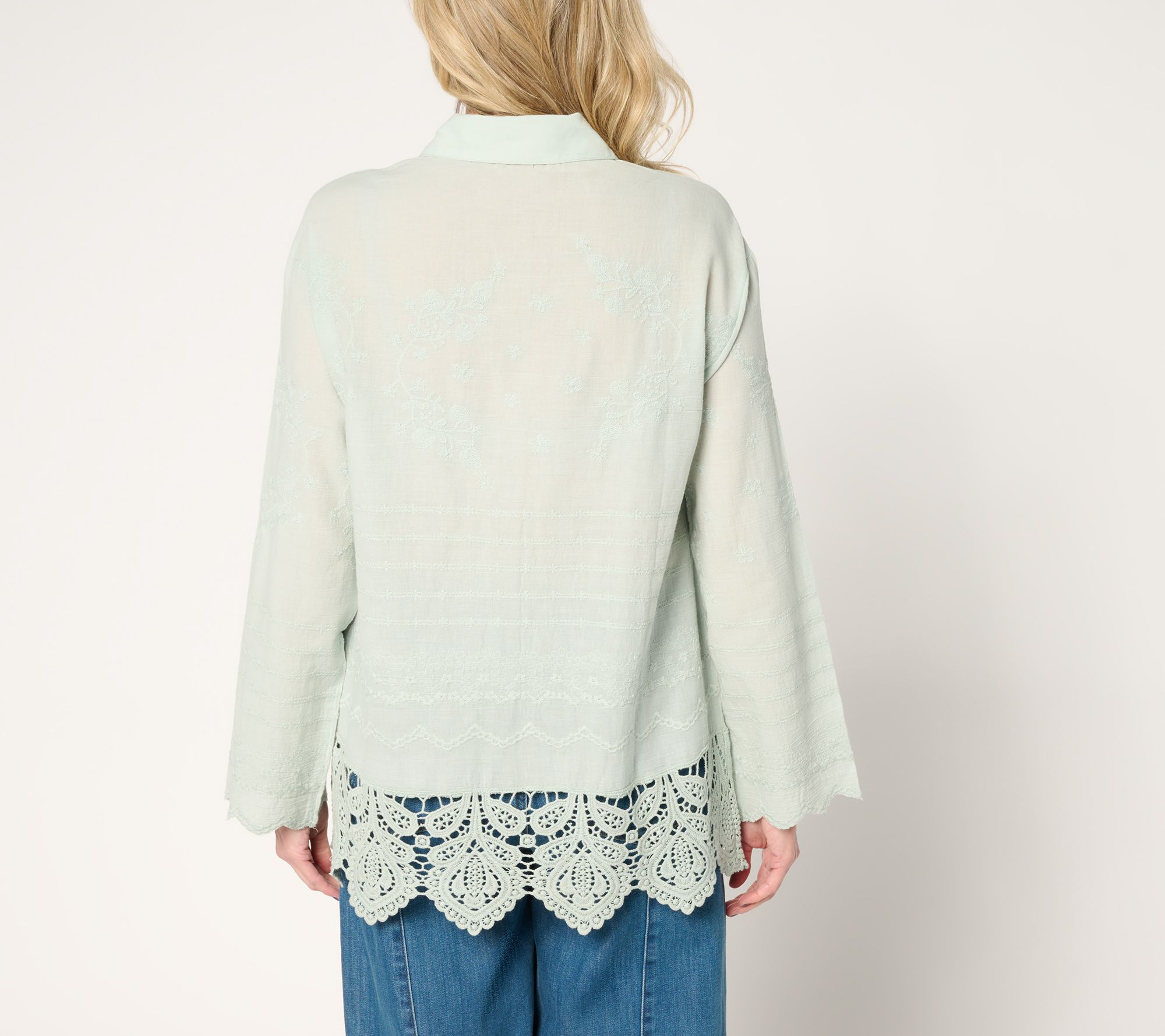 Leave your what-to-wear worries at the door. This beautifully relaxed, charmingly embroidered shirt has landed to make you feel pretty and polished -- and comfy (it's 100% cotton!) -- at the social gathering, work event, or travel excursion. From LOGO by Lori Goldstein®.