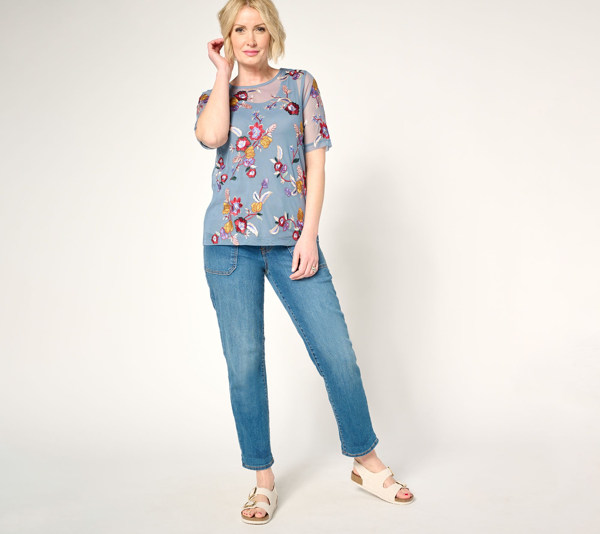 LOGO Lavish by Lori Goldstein Embroidered Mesh Top with Knit Tank