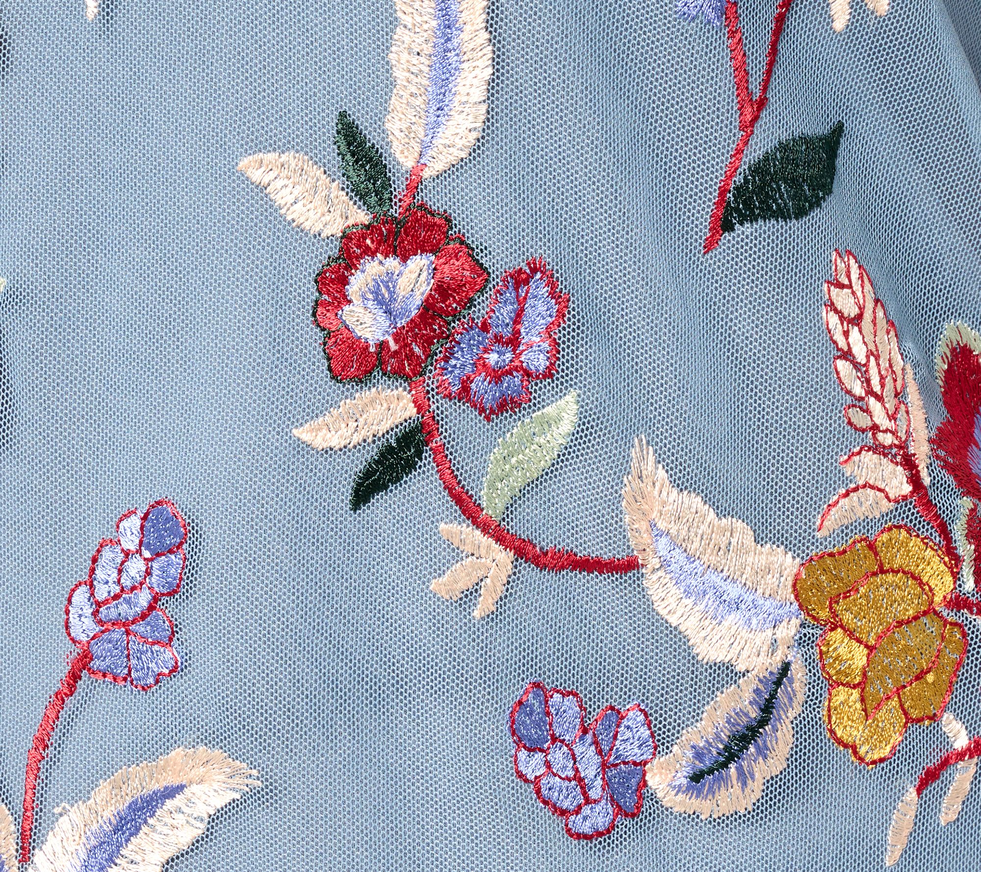 • Features: mesh short-sleeve top with built-in knit tank, crew neck, allover embroidery on top