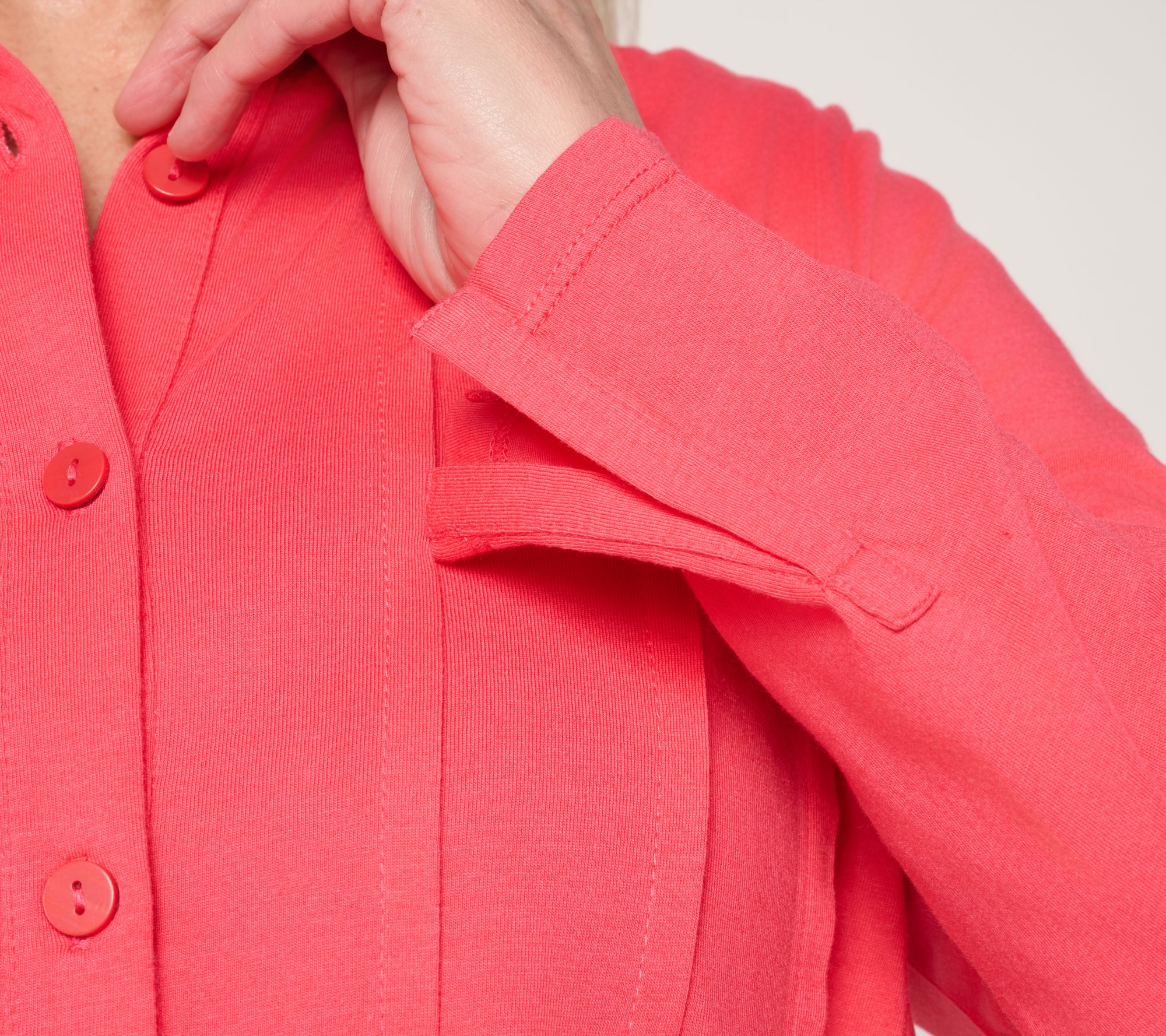 Fit: semi-fitted; follows the lines of the body with added wearing ease