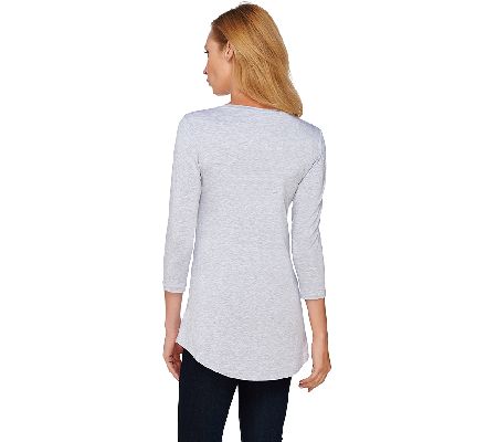 LOGO Layers by Lori Goldstein 3/4 Sleeve Knit Top with Shirttail Hem