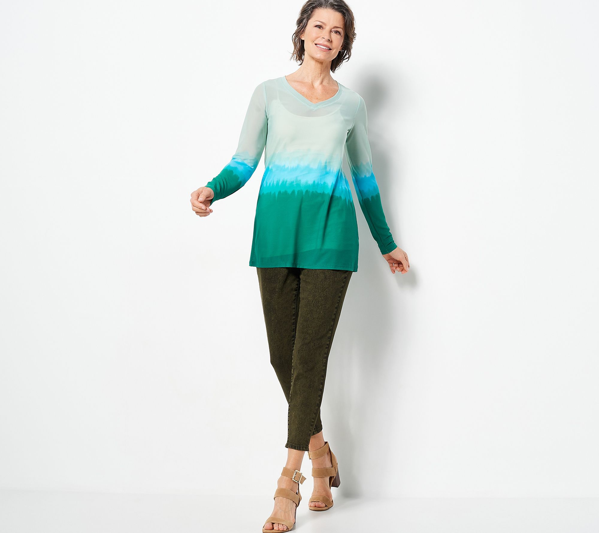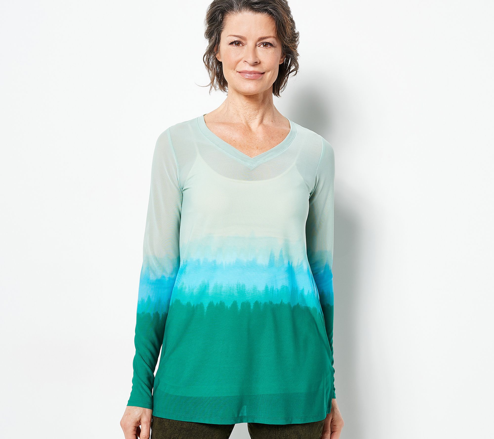 LOGO Layers by Lori Goldstein Dip-Dye Sheer Mesh V-Neck Top