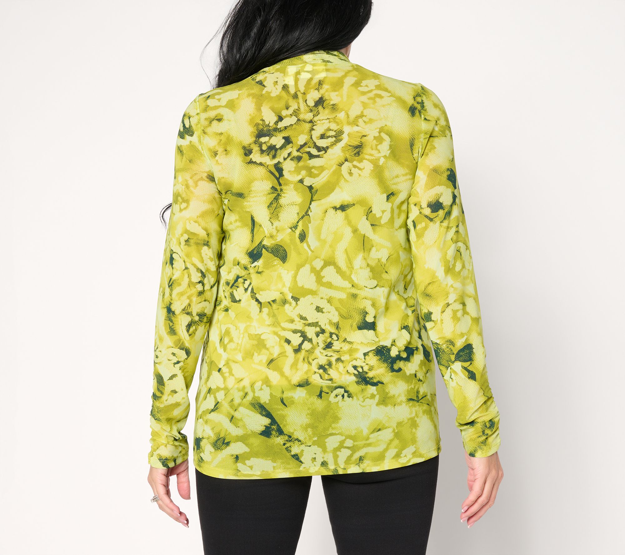 A busy day out or a relaxed evening in gets a chic update with this printed mesh top. The mock neck collar adds a modern edge, while ruching details at the sleeves create subtle texture that moves with you, making it both fashionable and comfortable from morning to night. From LOGO Layers by Lori Goldstein®.