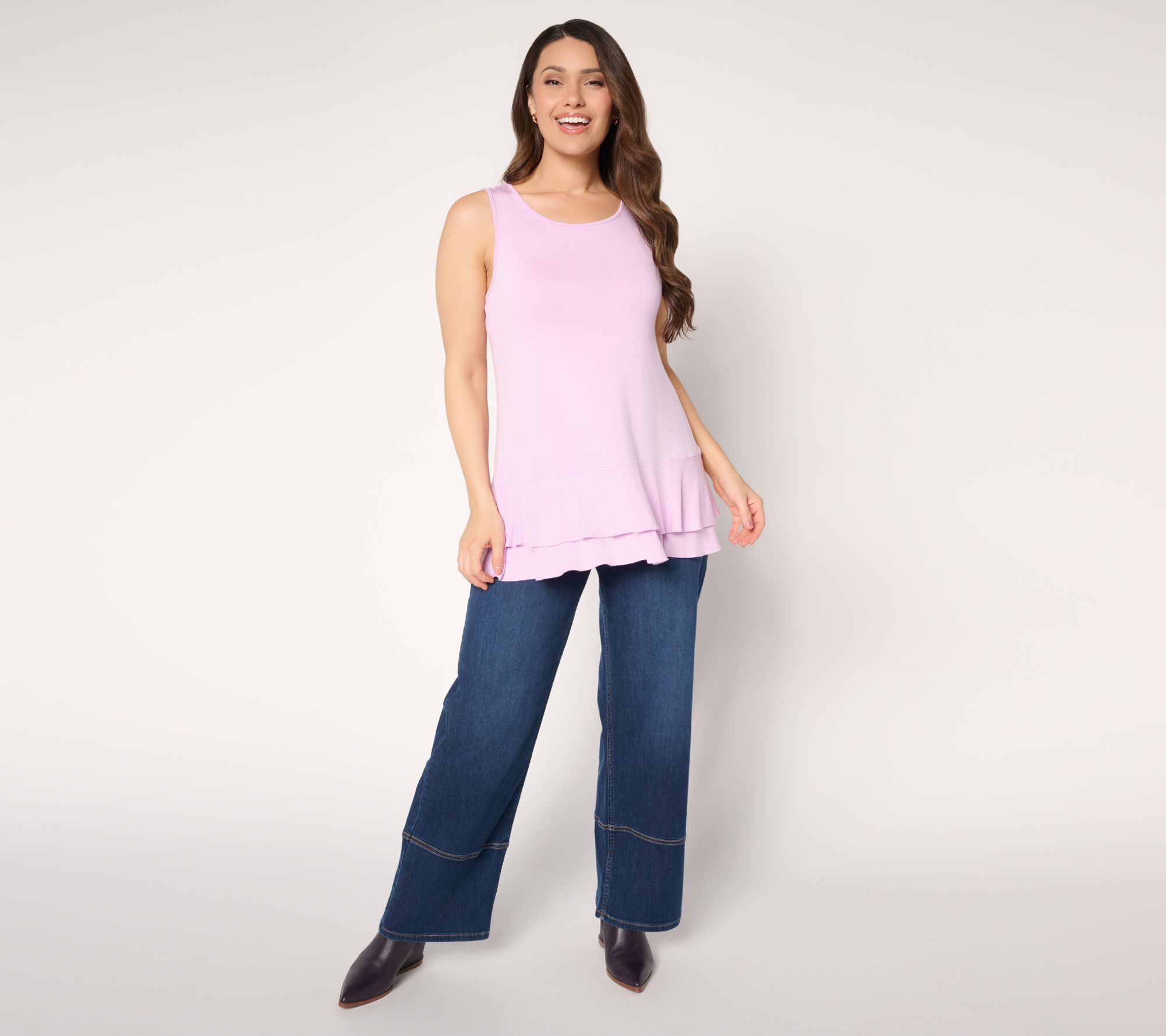 Refresh your casual style with this knit tank, designed with a flared and tiered hem that moves gracefully through weekend brunches or afternoons shopping. Its lightweight feel makes it easy to layer, whether worn solo on sunny days or under a cardigan for cooler evenings. From LOGO by Lori Goldstein®.