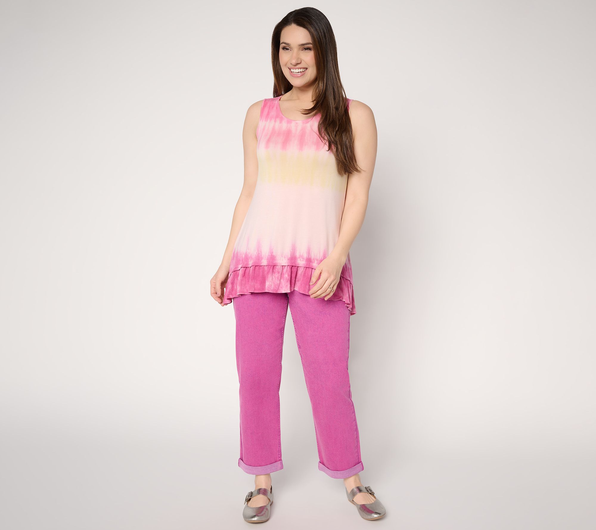 LOGO Layers by Lori Goldstein Ruffle Hem Dye Effect Tank