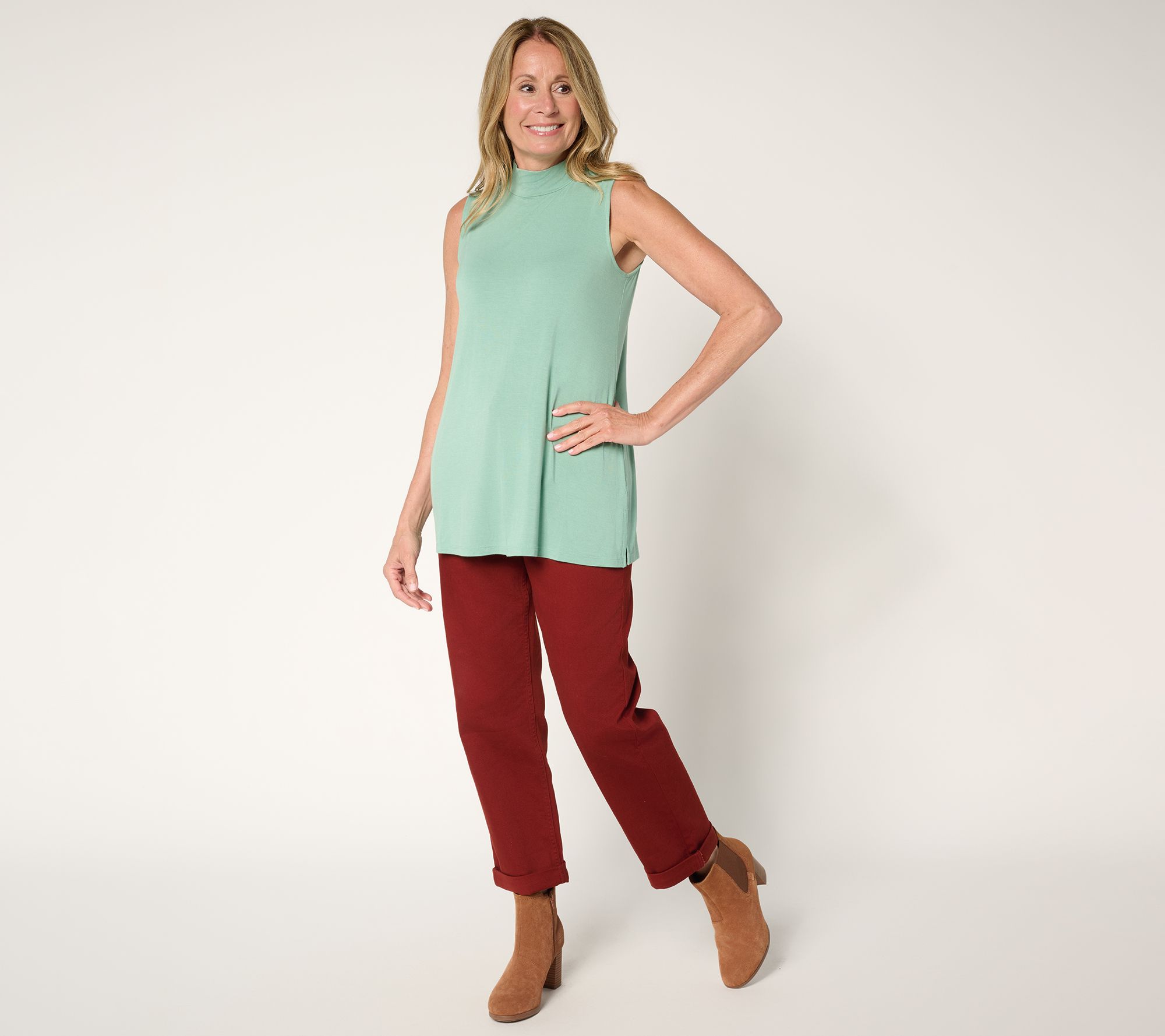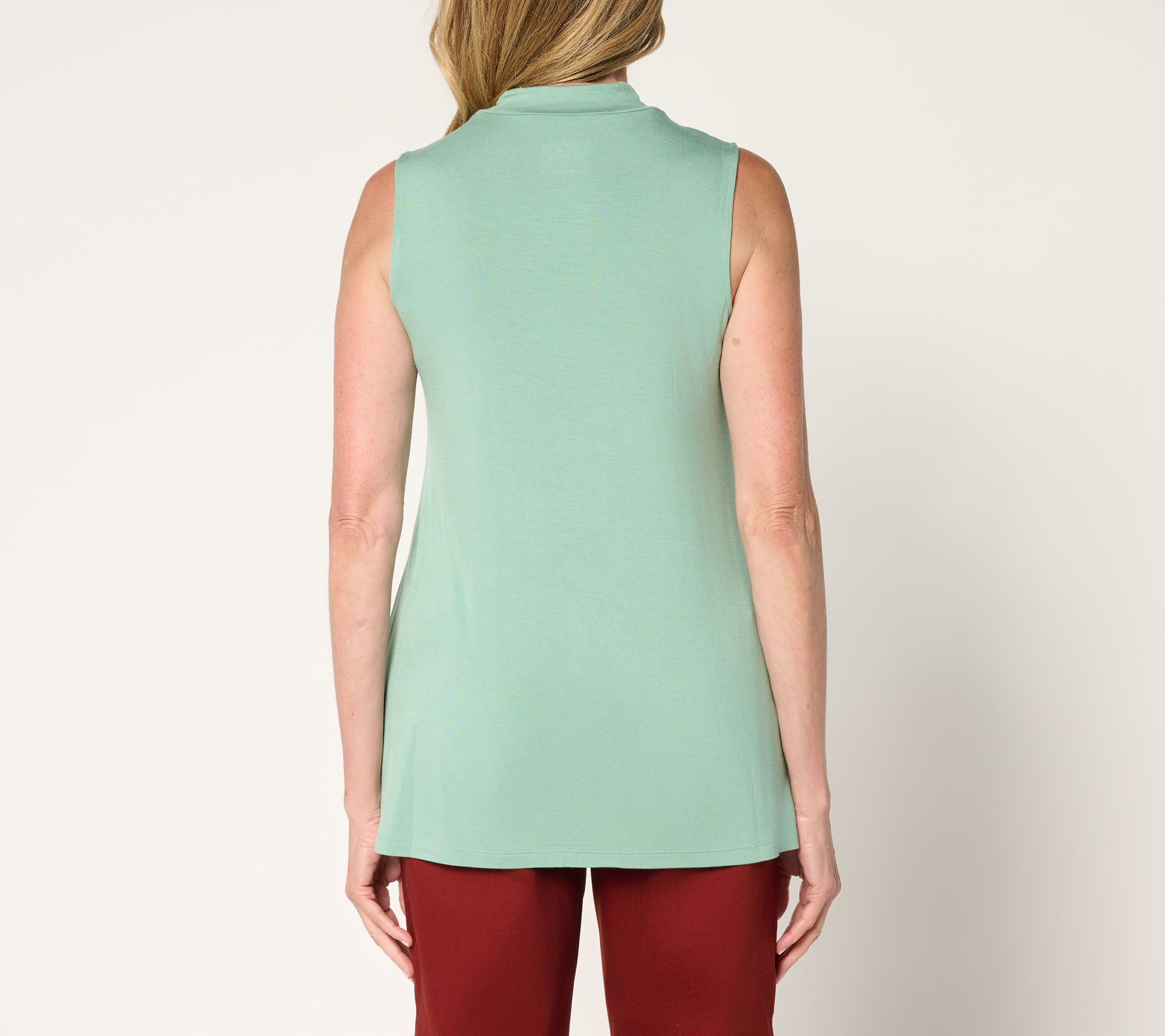 Effortlessly complement your favorite layers or wear it solo for a polished look -- this sleeveless mock neck top flows into a stylish A-line silhouette for all-day ease. Whether you're at the office, meeting friends, or dressing up a casual weekend, it brings modern appeal and comfort to any outfit. From LOGO by Lori Goldstein®.