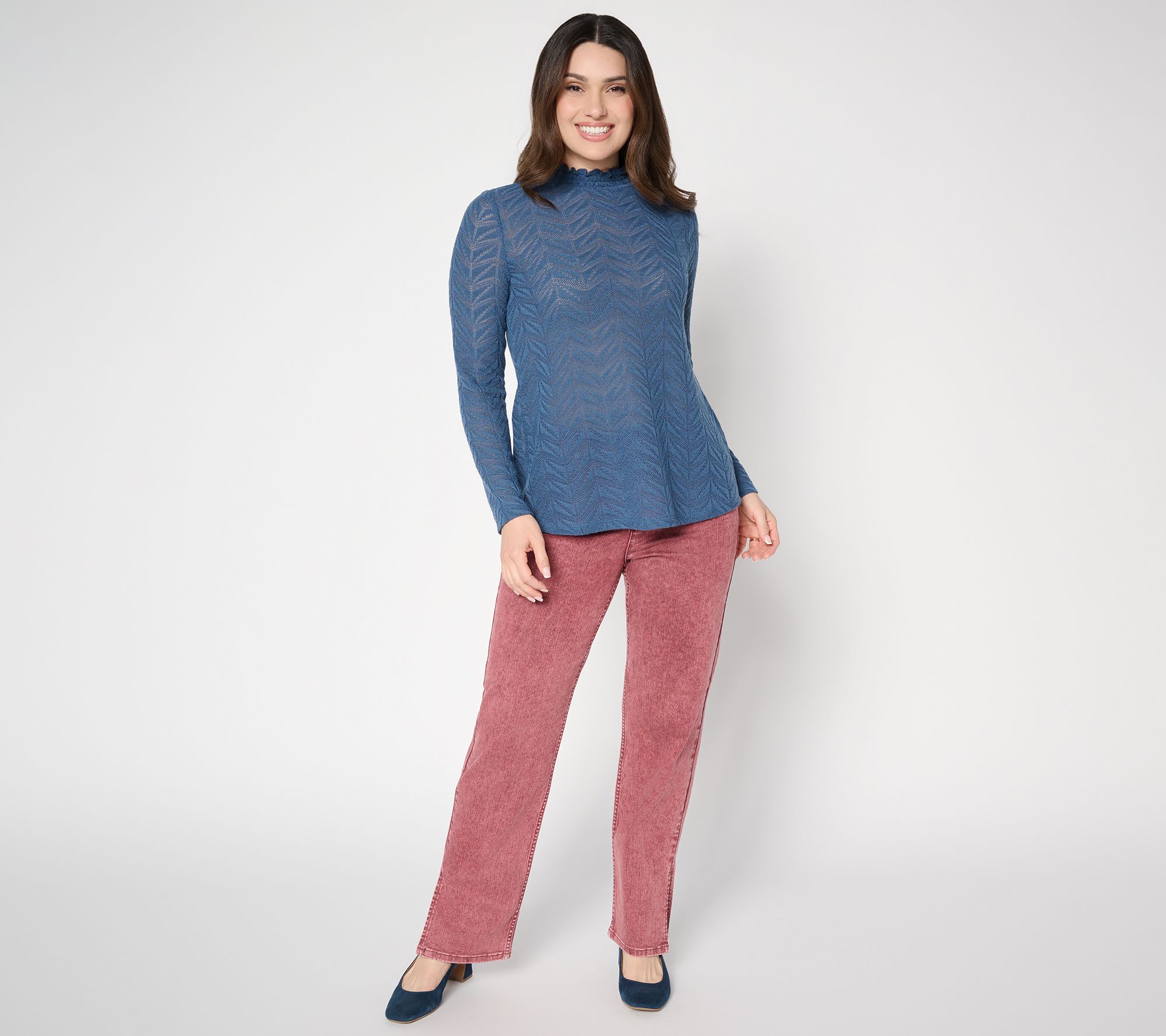 Shake up everyday looks with this textured knit top, ready to layer under blazers for the office or style solo for a pulled-together dinner look. Long sleeves and a smocked mock neck add easy dimension, making this shirt a versatile go-to in any season. From LOGO Layers by Lori Goldstein®.