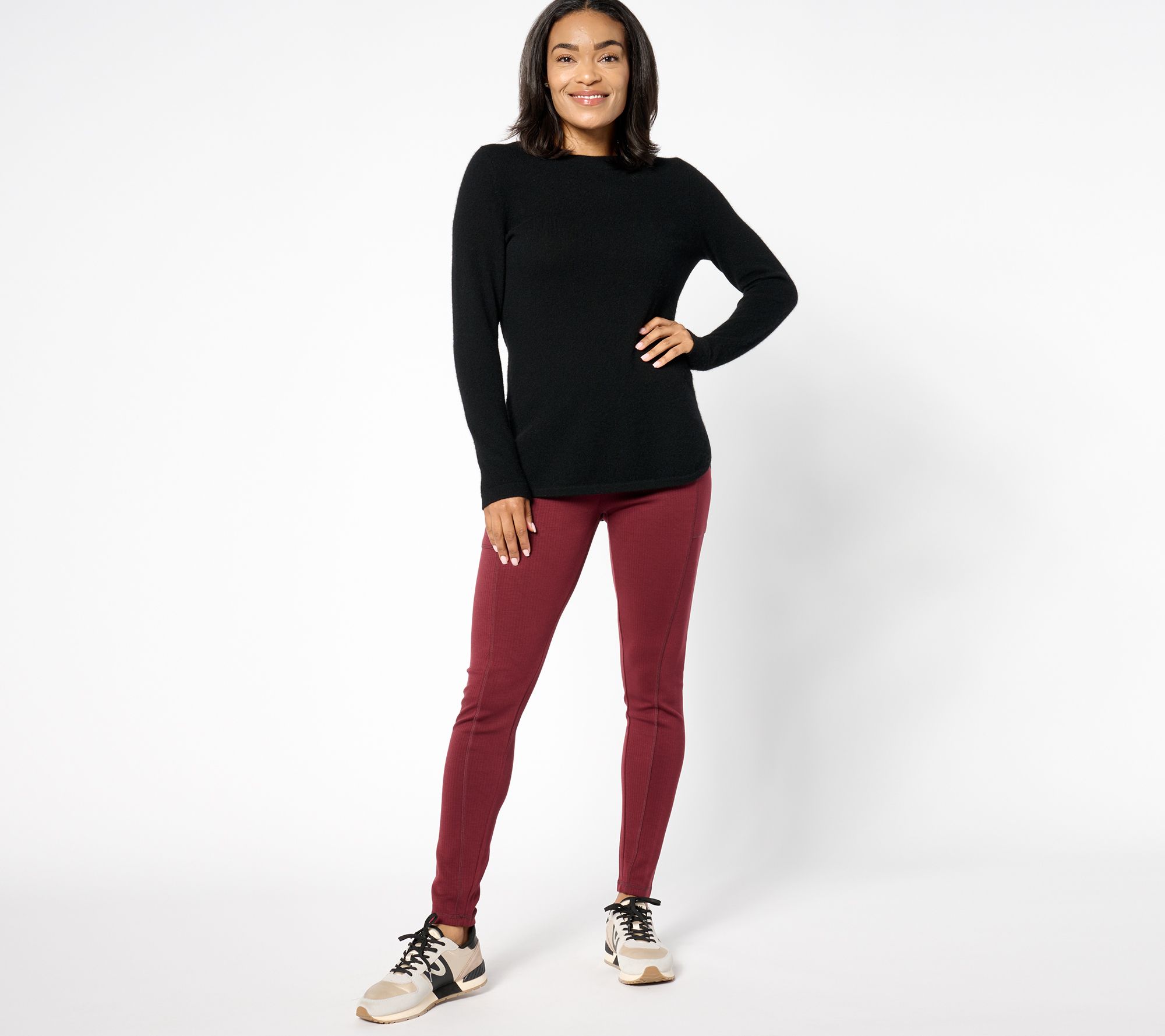 You'll fall in love with this laid-back look instantly. Equal parts chic and comfortable, these pull-on leggings are designed for effortless downtime and running around time. Front slits and side pockets make them an all-around favorite. From LOGO by Lori Goldstein®.