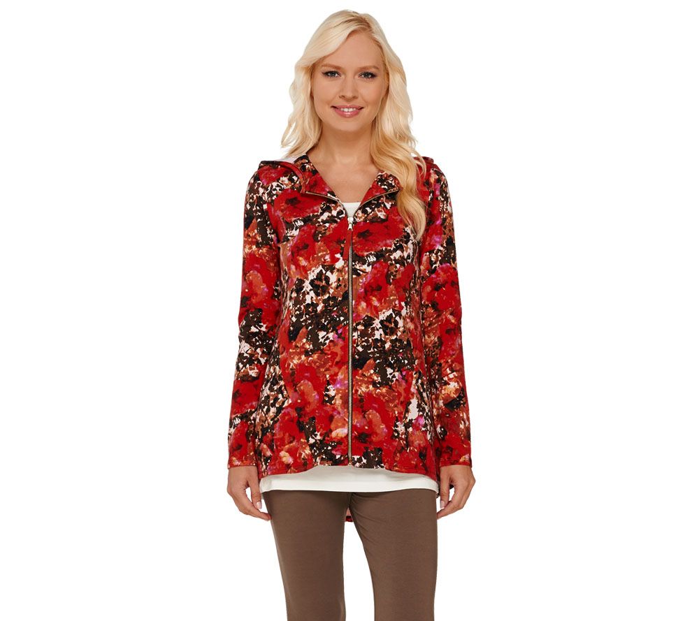 Fleur plan. When your goal for the day is to feel good and look fantastic, slip on this French terry jacket from Lori Goldstein. The allover floral print is all but guaranteed to bring a smile and the comfy French terry means it feels as amazing as it looks. From LOGO by Lori Goldstein.