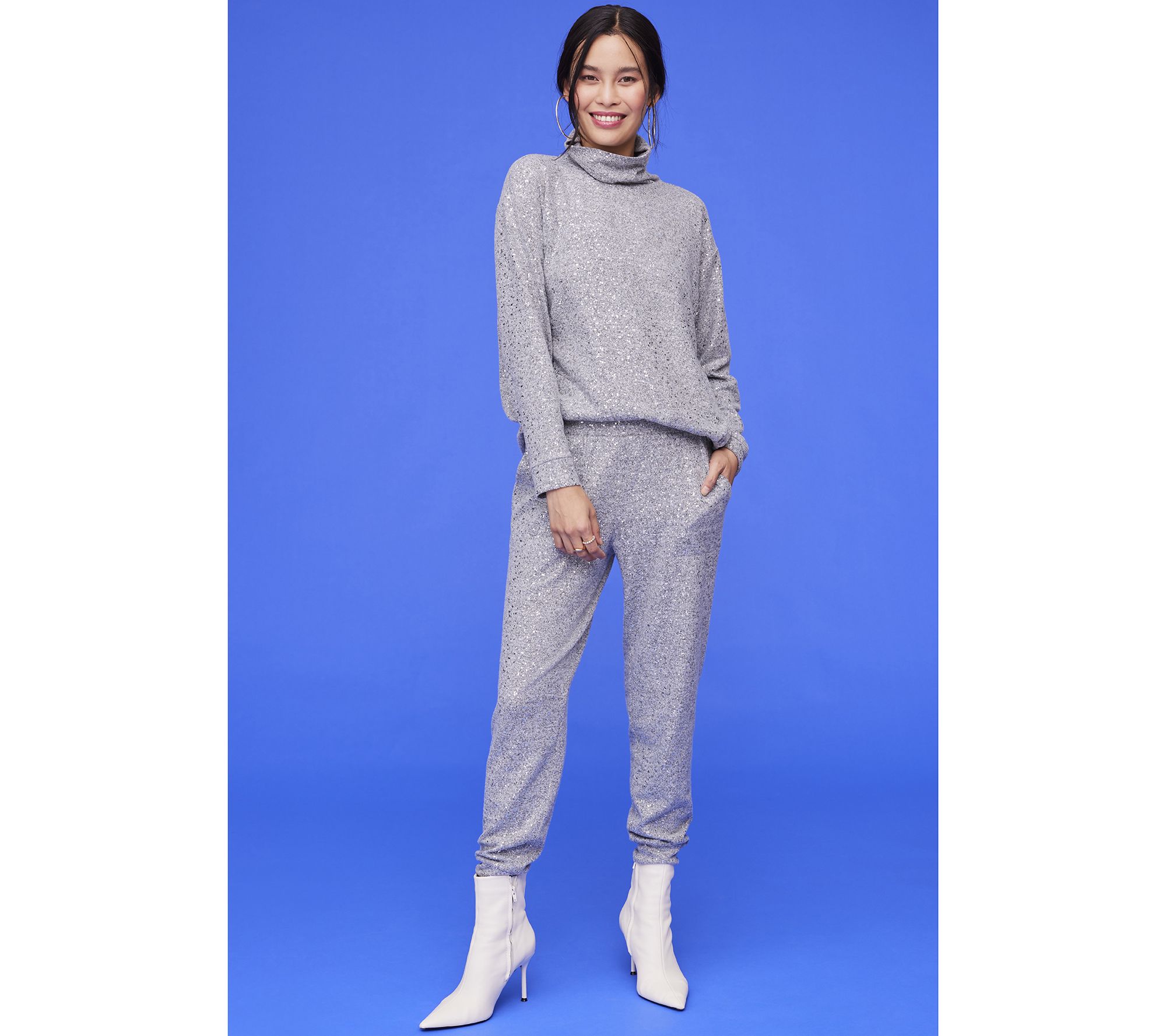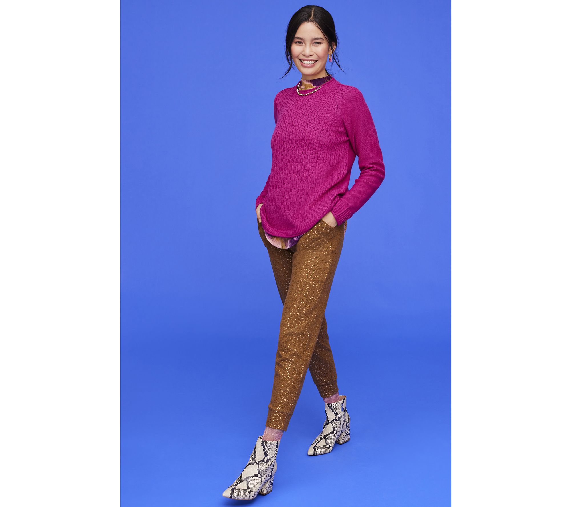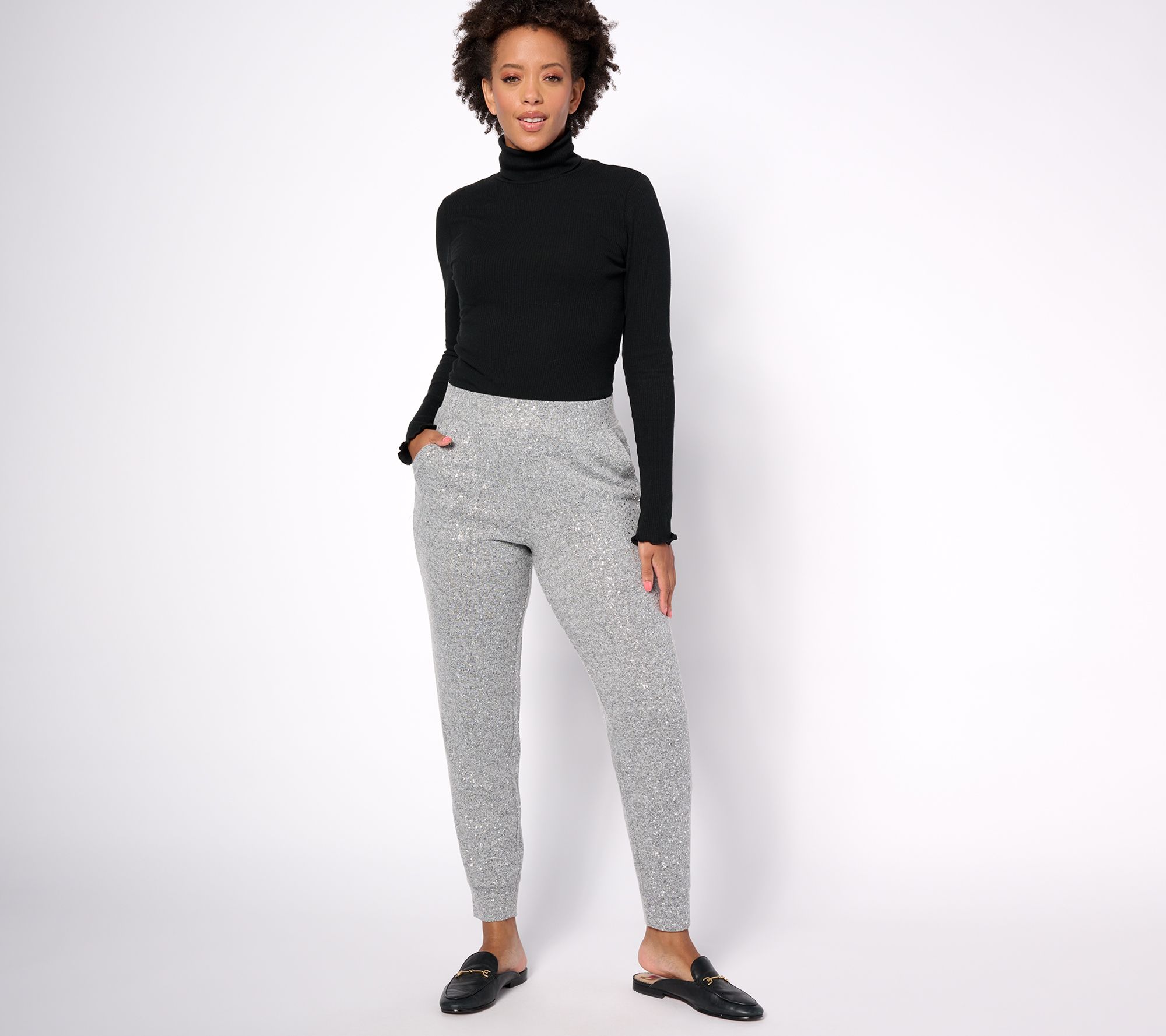 A foil print gives these knit joggers something extra special. From LOGO by Lori Goldstein®.