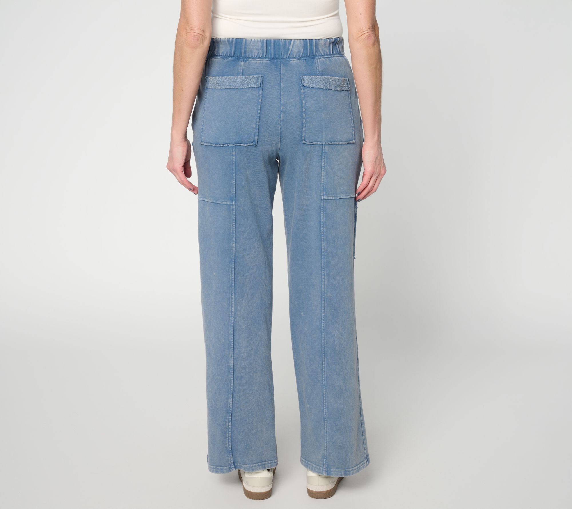 Your denim drawer deserves a dramatic departure from the ordinary. Leave it to Lori to provide the aesthetic escape! Pulling us in with pull-on ease, these wide-leg pants offer leg-lengthening seam detail down the front and an overdyed fabric finish for fresh appeal. Add in the side pocket and a cotton-rich feel, and we'll take two! From LOGO Lounge by Lori Goldstein®.