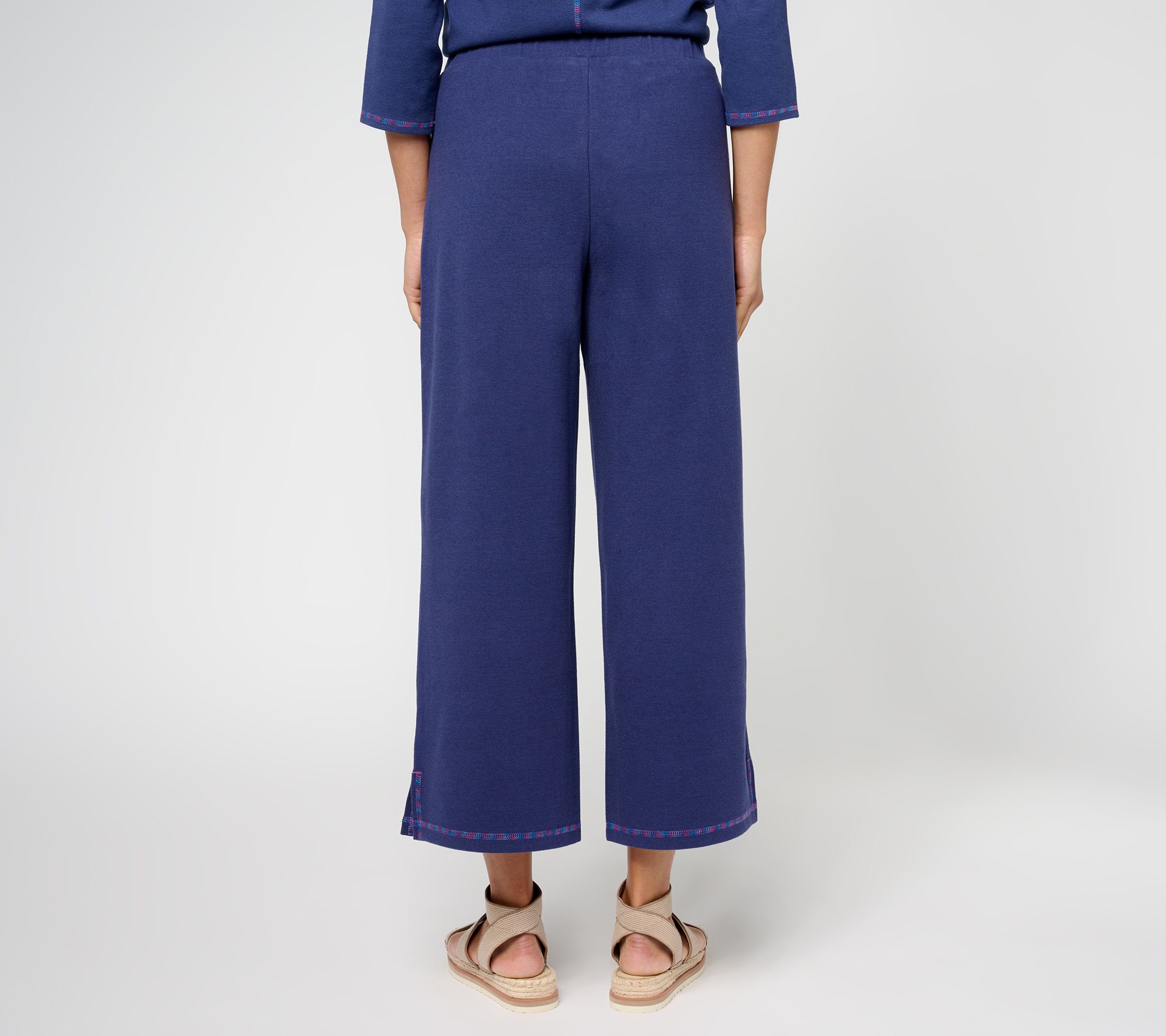 Contrast coverstitch details add some playful pep to these cozy comfy pants. From LOGO by Lori Goldstein®.