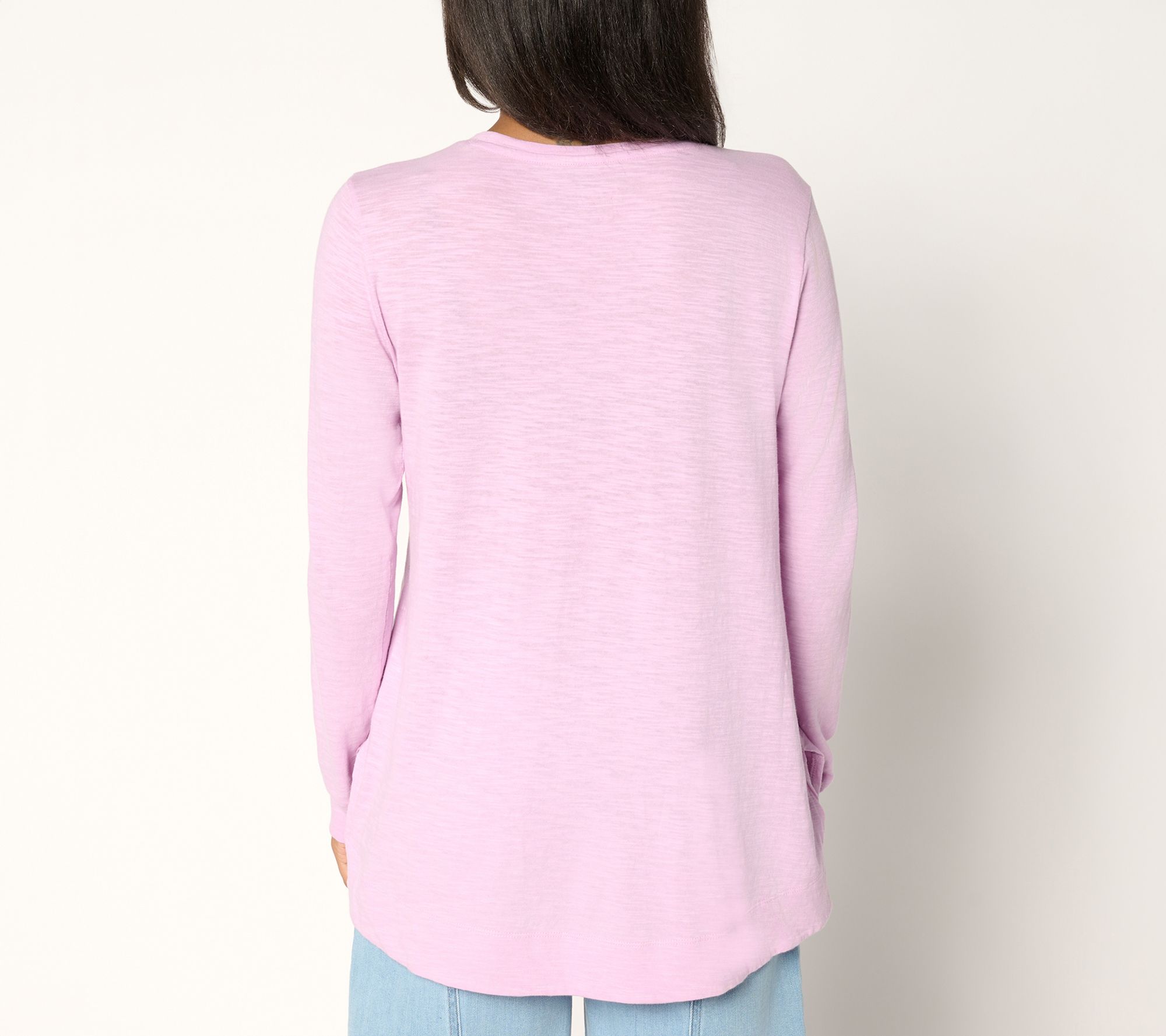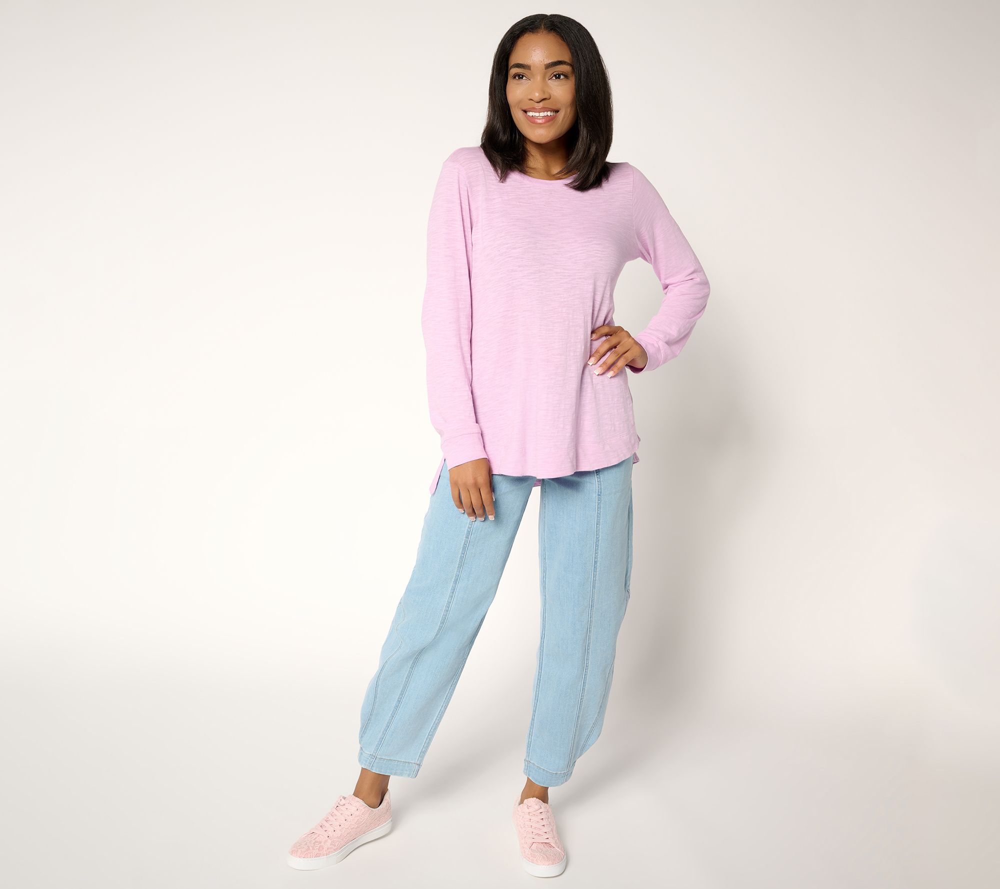 Refresh your daily lineup with this LOGO cotton knit top, featuring long sleeves, a classic round neck, and side slits for ease of movement. Its semi-fitted shape pairs beautifully with denim or layered under a vest for extra style points. From LOGO Principles by Lori Goldstein®.