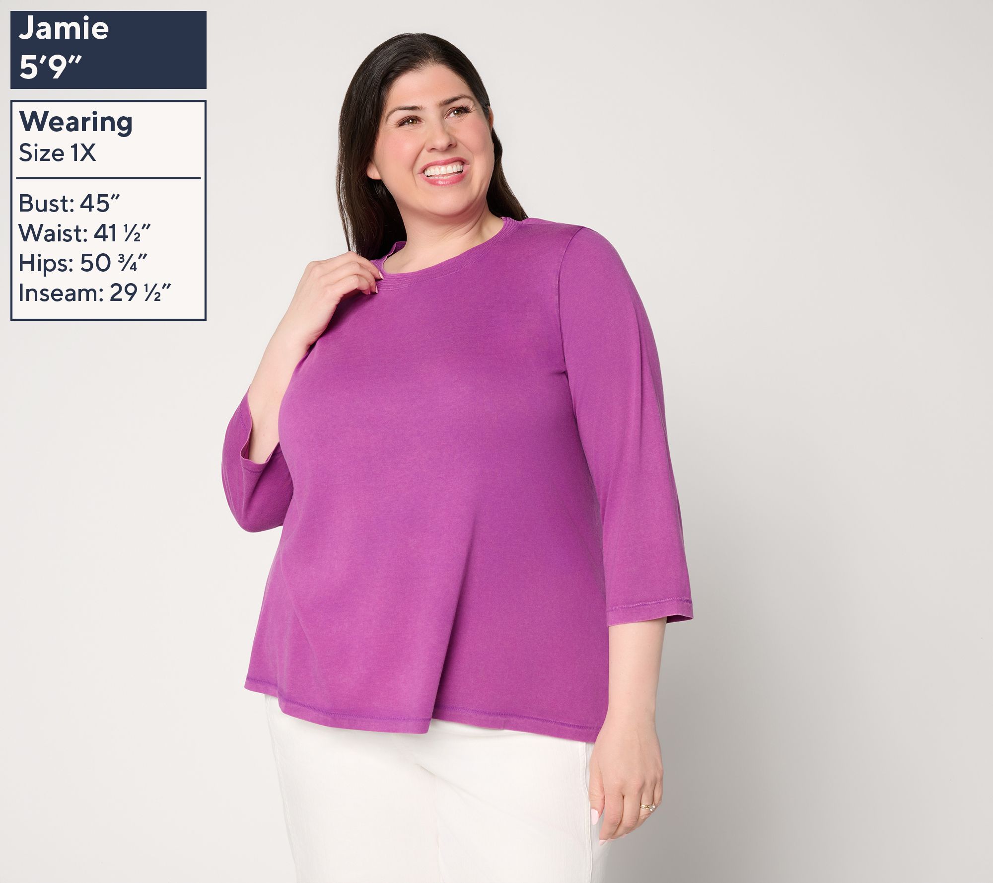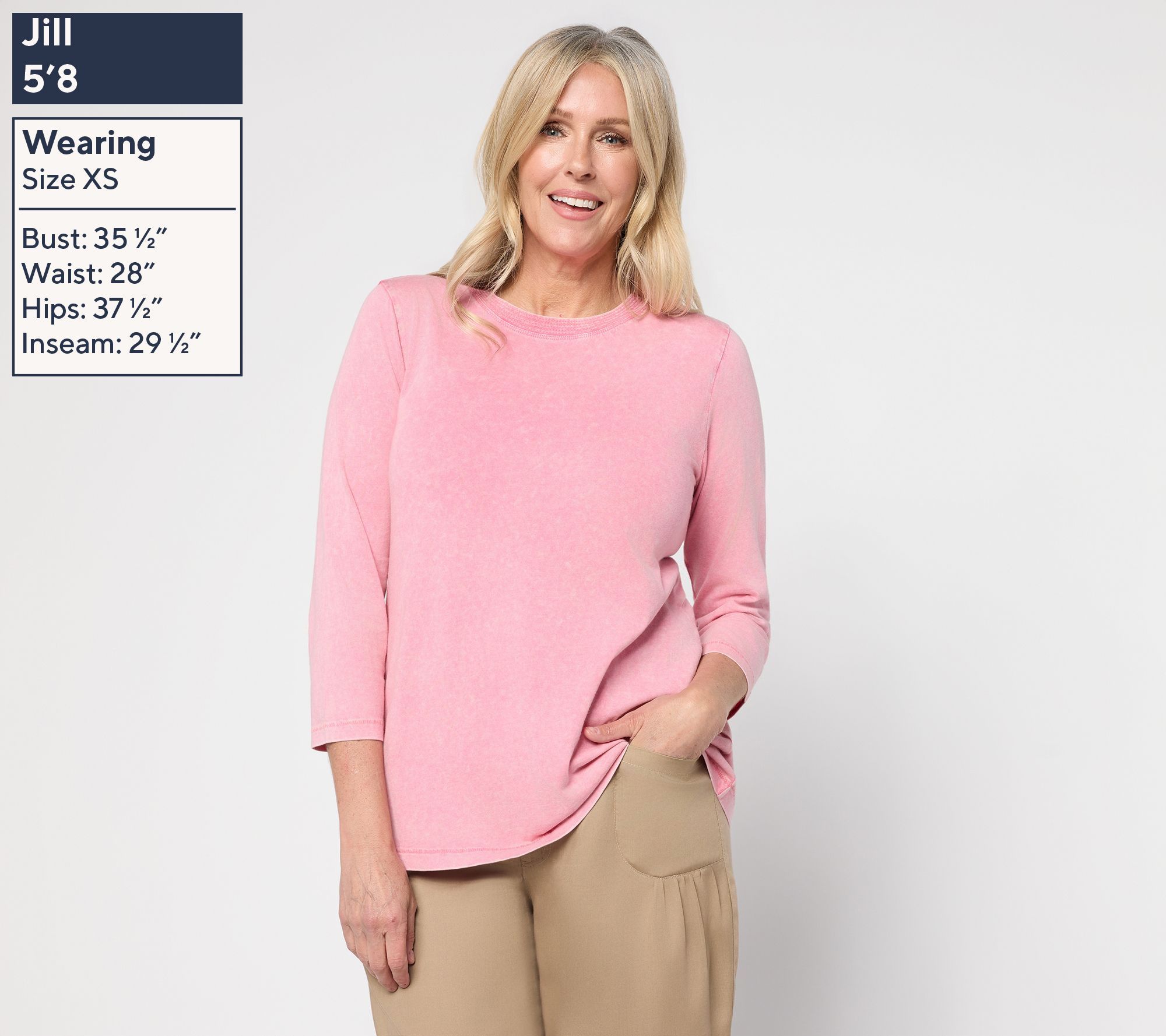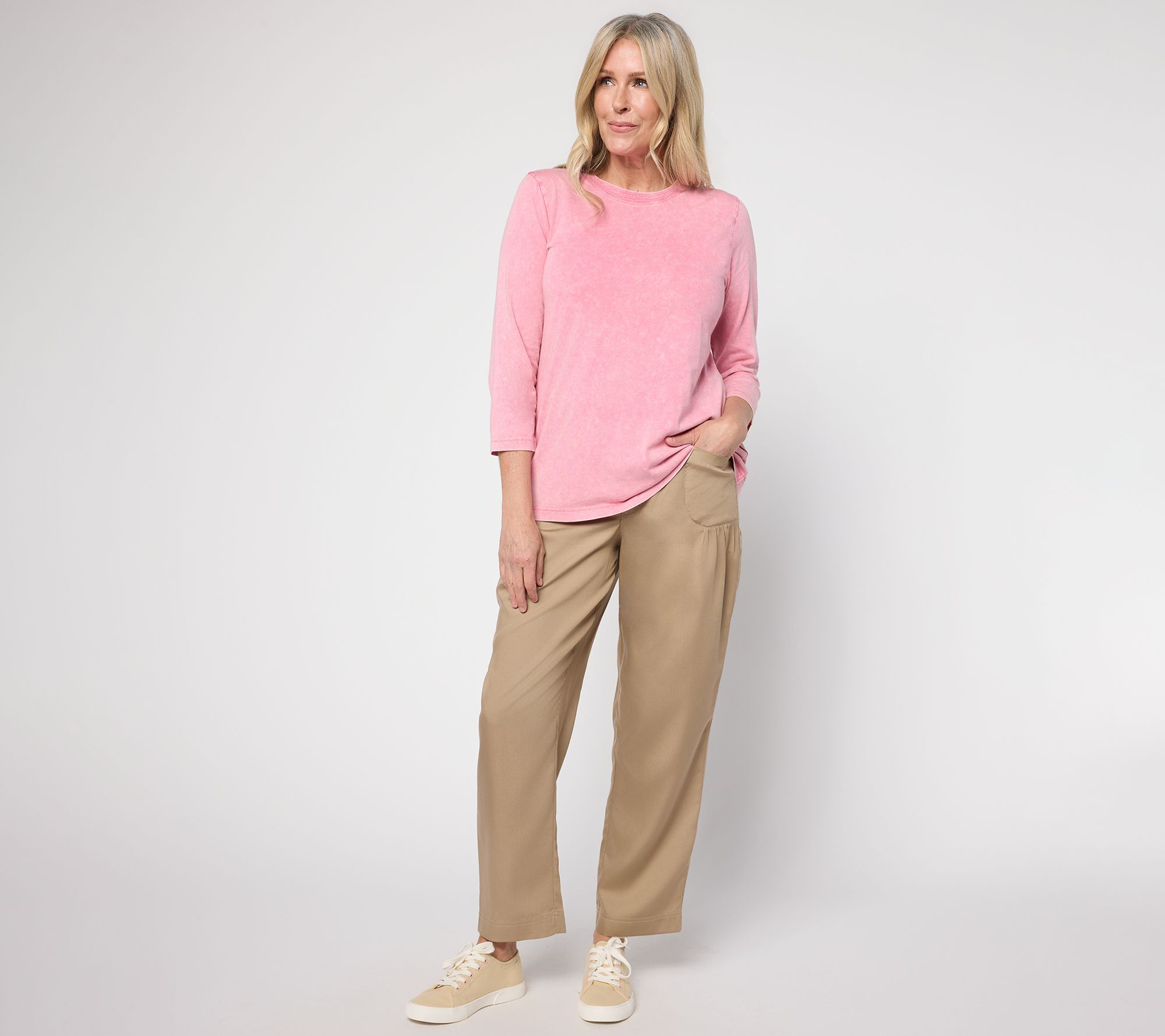 Sometimes, fantastic fashion is as simple as a sun-faded top. Lori Goldstein has once again perfected the art of classic style with this beauty that pairs with anything from shorts to capris to those beach pants you can't wait to wear on repeat this summer. The crew neckline showcases trapunto stitch detailing for a touch of something special, while the 3/4-length sleeves are positively seasonless (and way more comfortable than bunched up short sleeves or skin-baring tanks). Dress it up with a statement necklace and bangles or go casual with denim cutoffs and thong sandals -- there's no wrong way to wear this always-right top. From LOGO Principles by Lori Goldstein®.