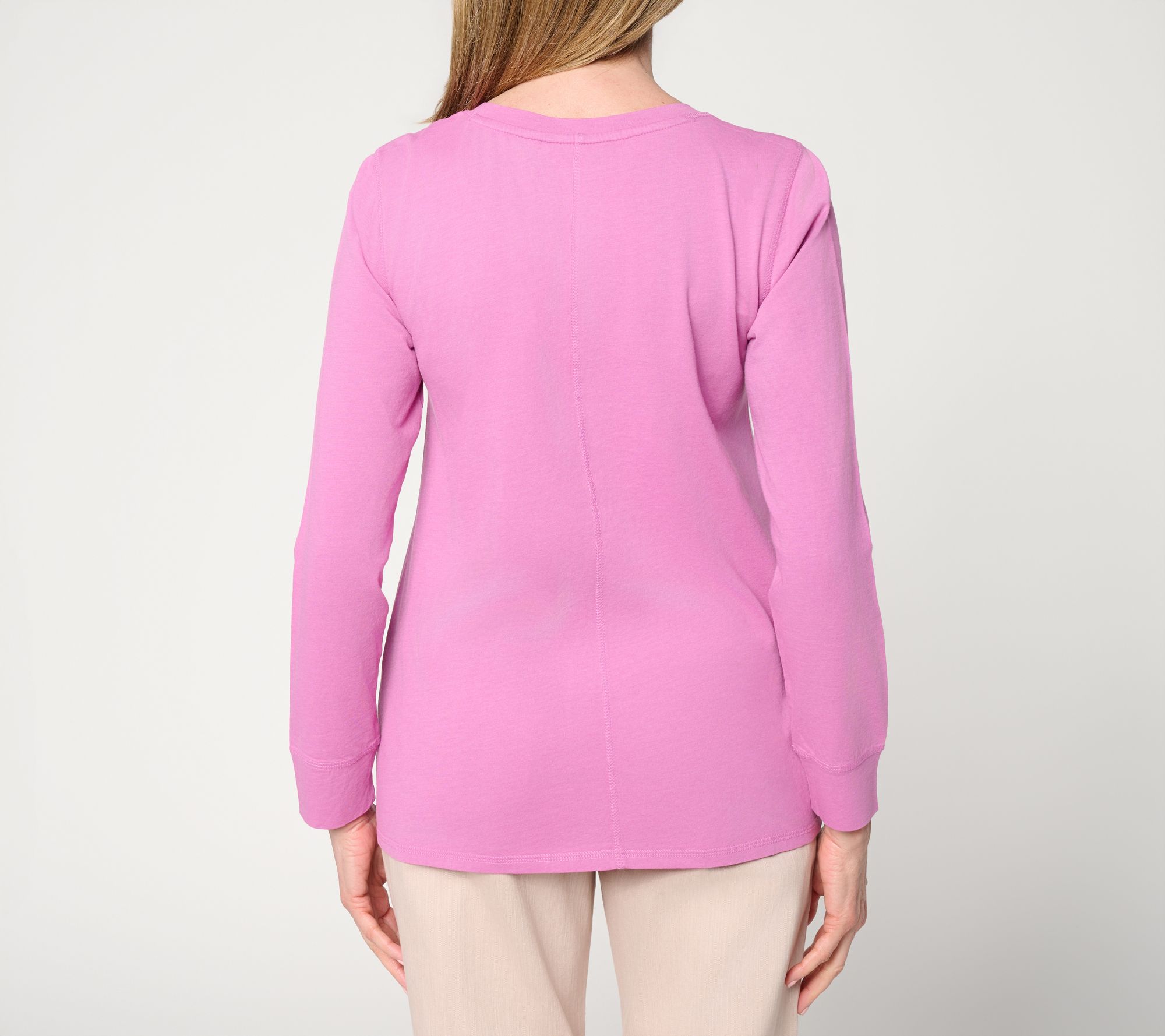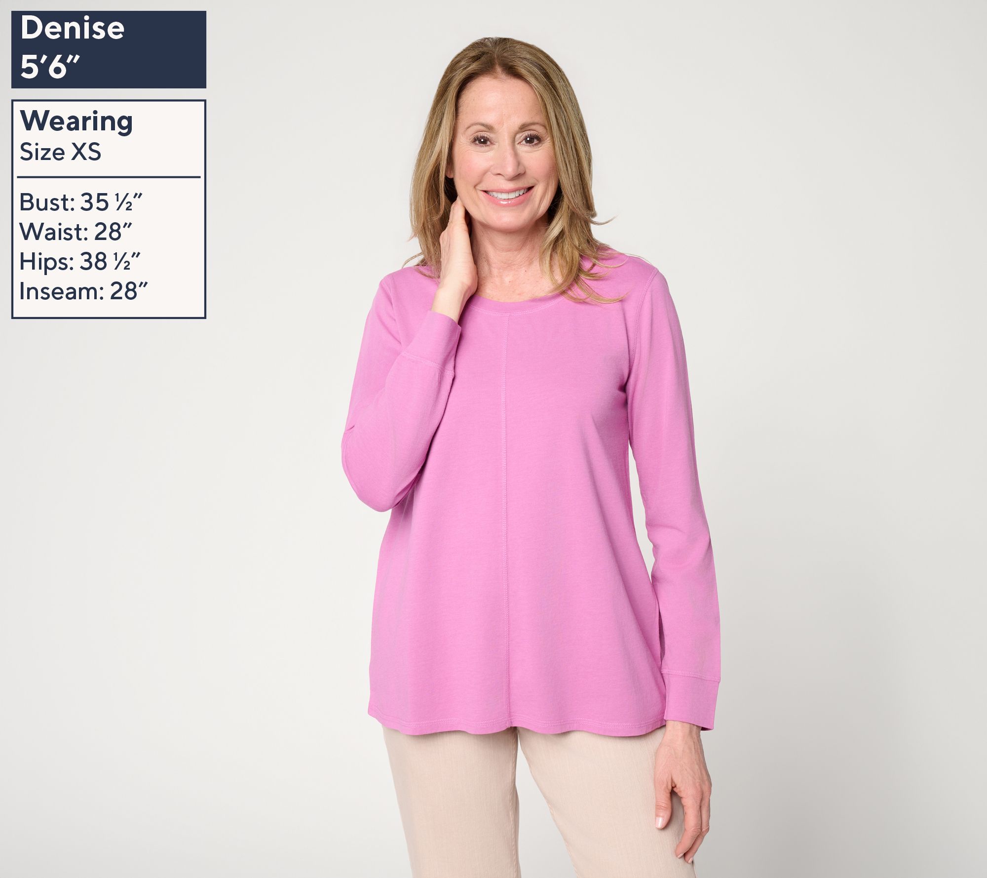 Whether paired with jeans for weekend coffee runs or styled under a blazer for a casual office look, this sun-faded knit top offers comfort with subtle sophistication. The tonal seam details add interest, making it an easy staple you'll want to wear on repeat wherever the day leads. From LOGO Principles by Lori Goldstein®.