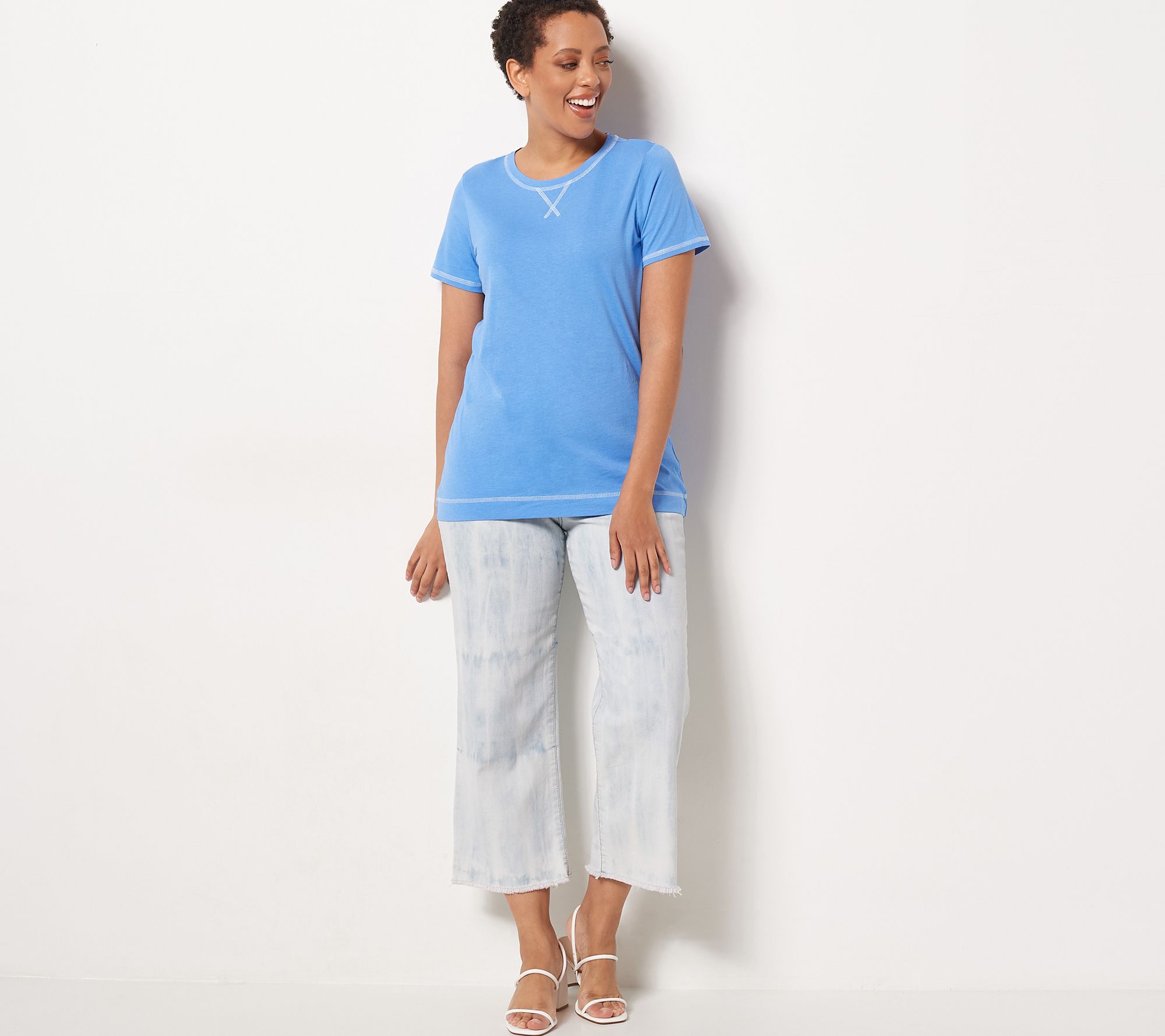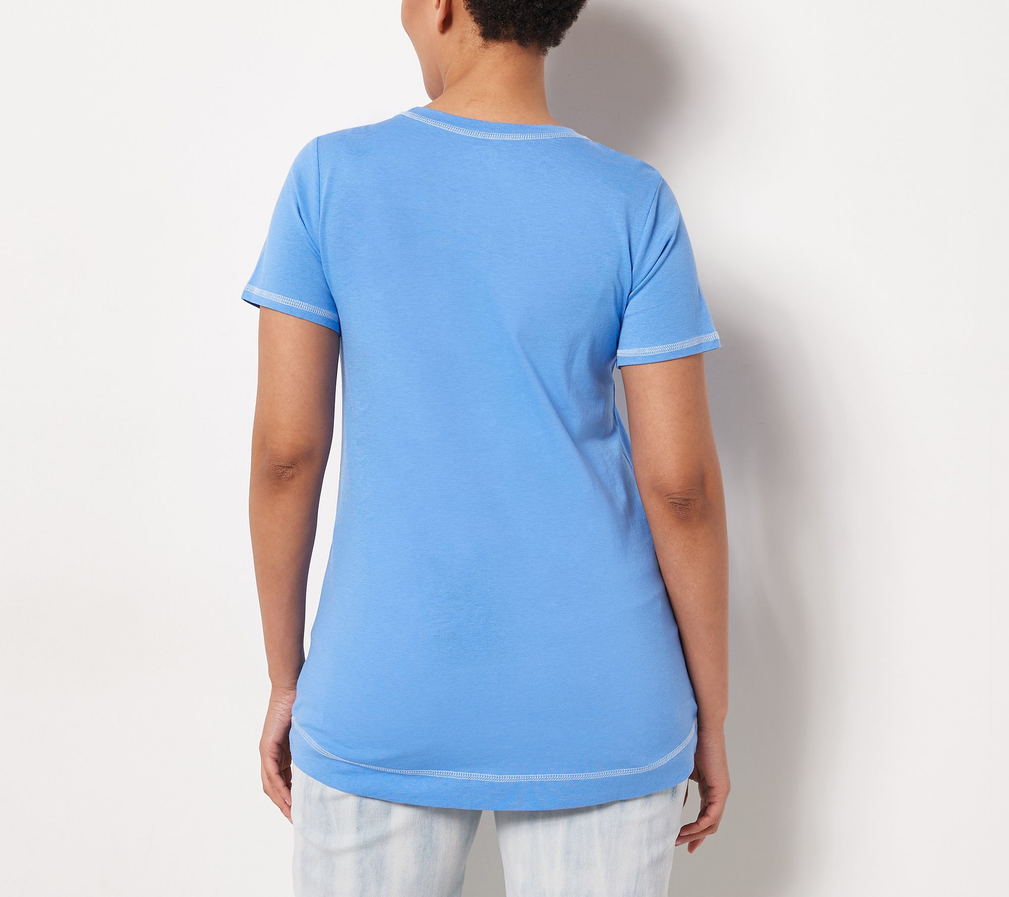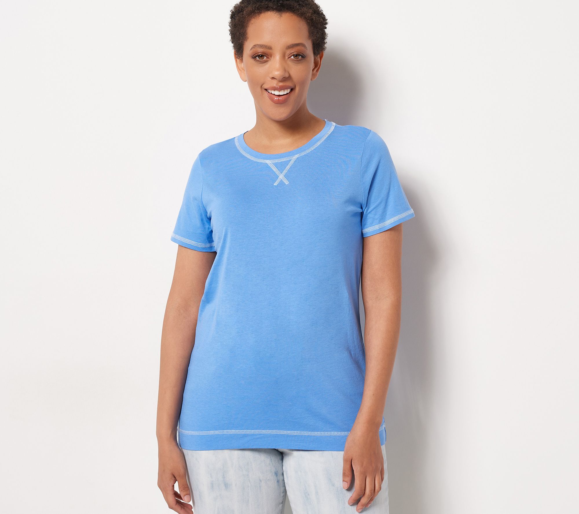 Seize the day (in casual style) with this soft and comfy tee, designed with contrast coverstitch details for a sporty vibe. From LOGO by Lori Goldstein®.