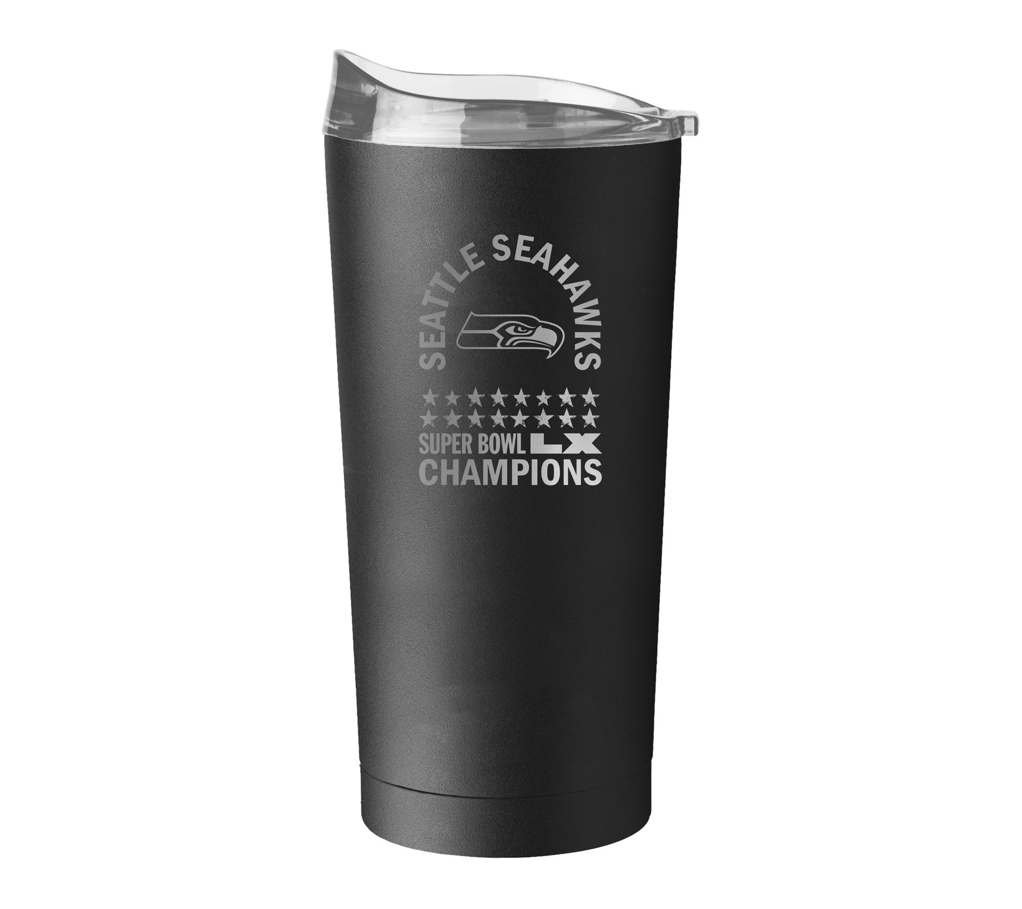 Raise a toast to unforgettable game days with this 20-oz stainless steel Seattle Seahawks Super Bowl Champions etch tumbler. Enjoy hours of icy-cold drinks while you soak in victory with double-wall insulation, an easy-grip powder coat, and a slider lid designed for straws -- ideal for keeping hydrated at tailgates, celebrations, and daily commutes. From Logo.