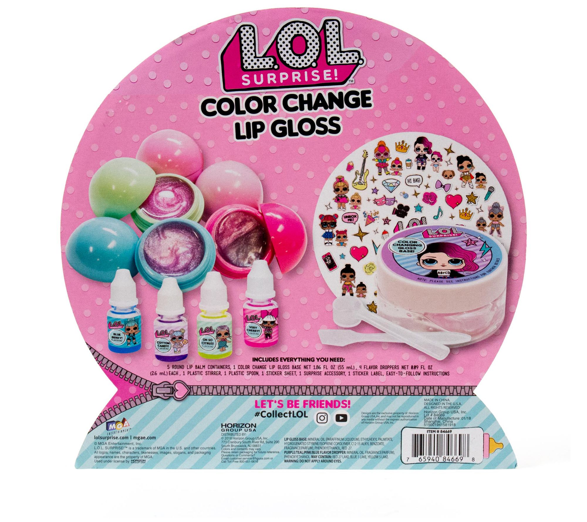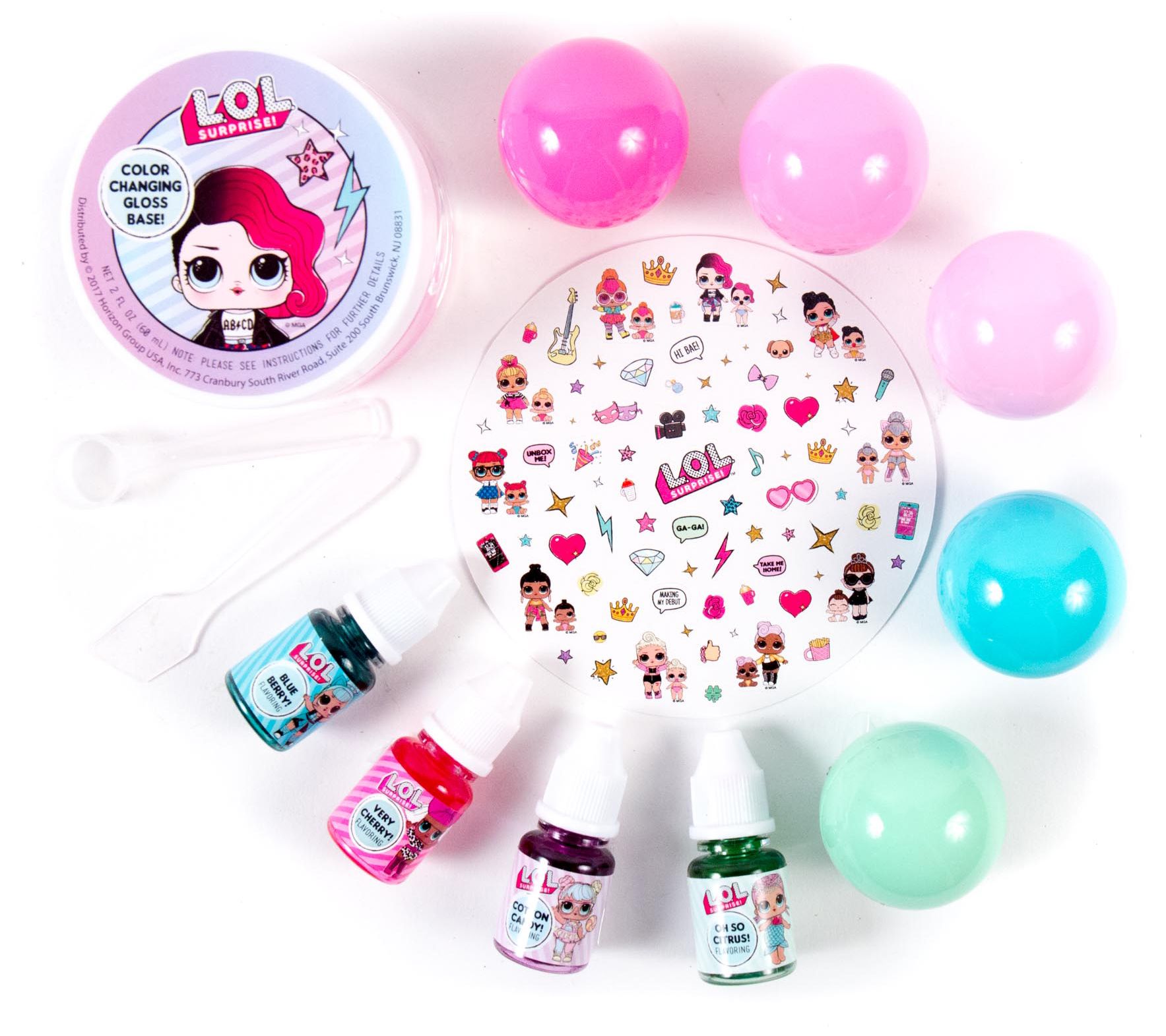Create your own line of totally fierce cosmetics with this color-changing lip gloss kit that features fresh flavors and fun stickers. From LOL Surprise.