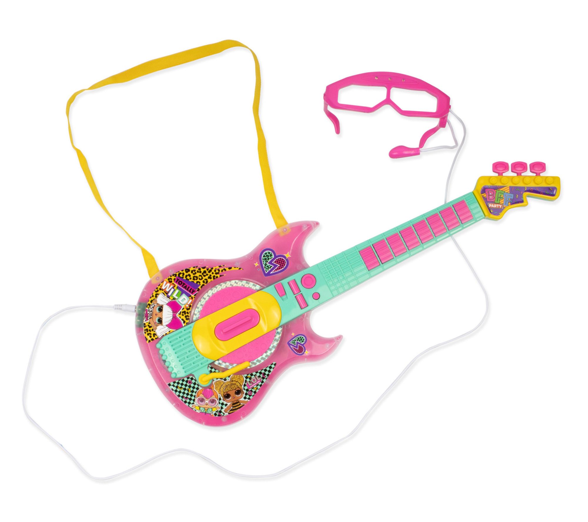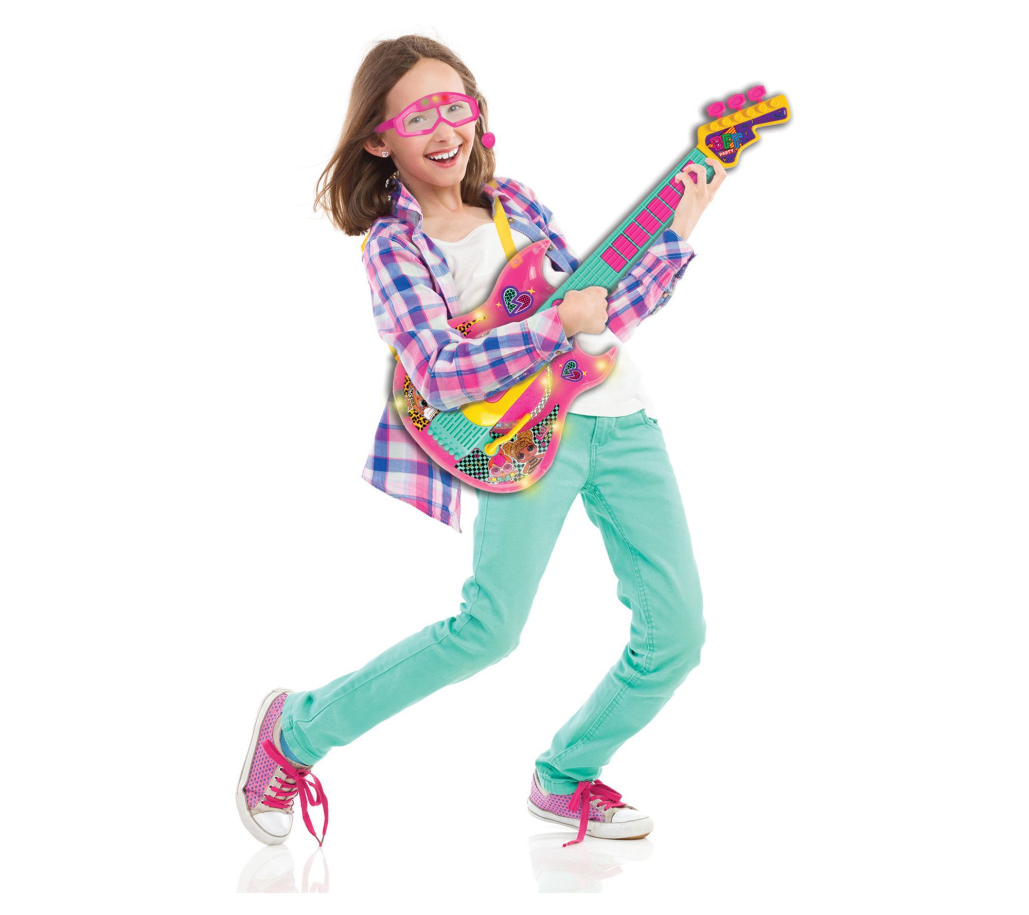 • Includes lights and sound guitar and light-up glasses with microphone