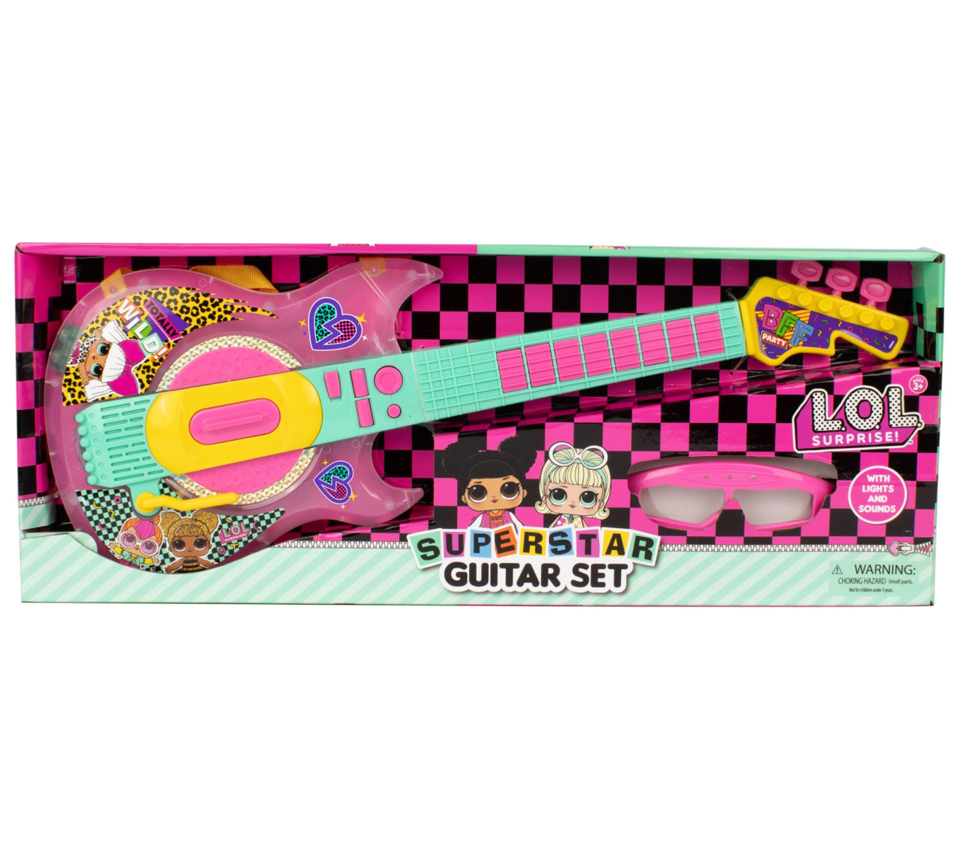 Little rockstars will love jamming with the LOL Surprise superstar guitar toy set. Featuring dazzling lights and sounds, stylish glasses, and a microphone headset, it's perfect for sparking musical creativity and fun performances. From LOL Surprise.