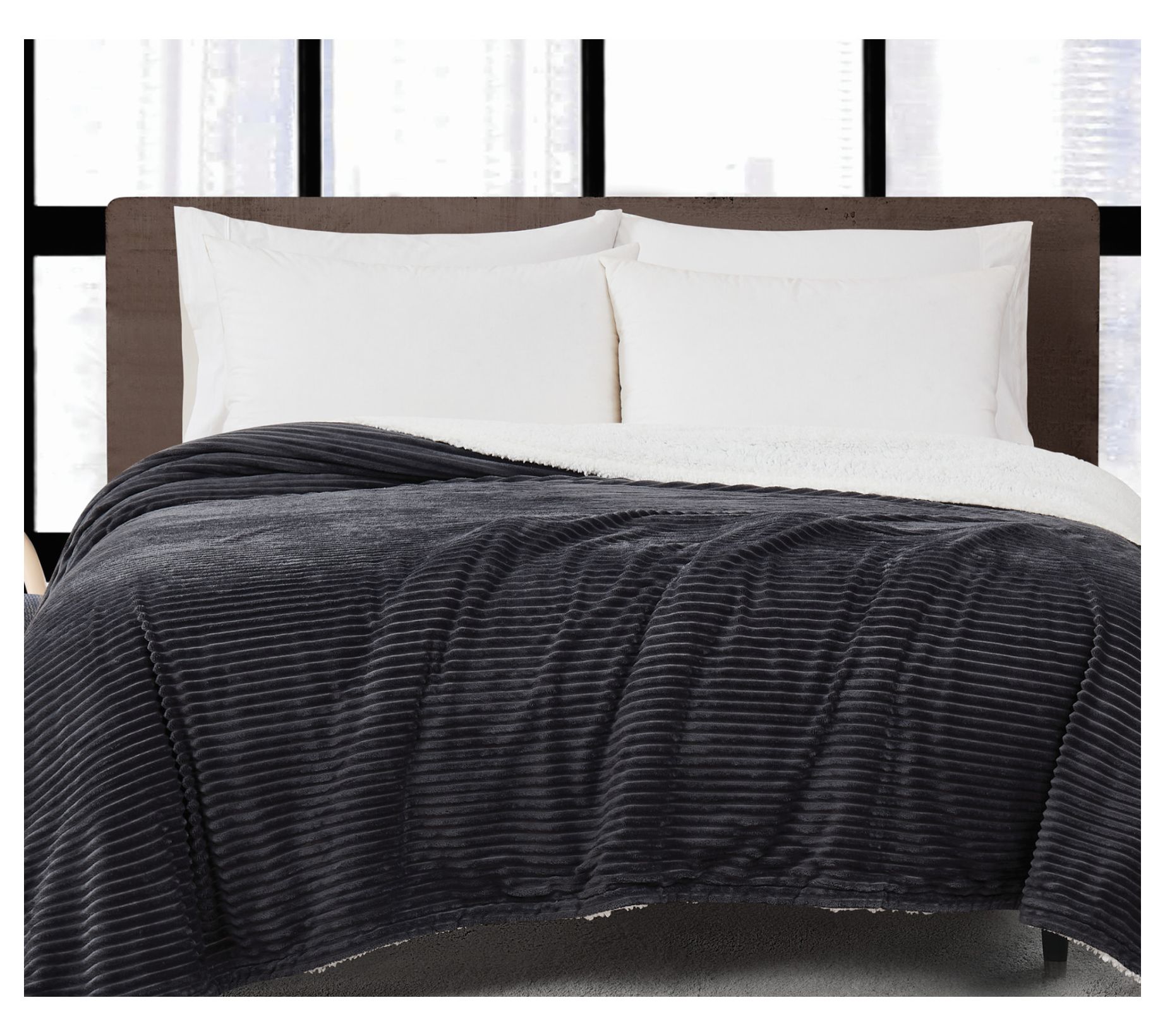 Add a touch of timeless elegance to your bedroom with the London Fog corduroy twin blanket. Featuring a larger corduroy pattern on one side and a plush sherpa reverse, this blanket offers both style and warmth for those chilly nights. From London Fog.