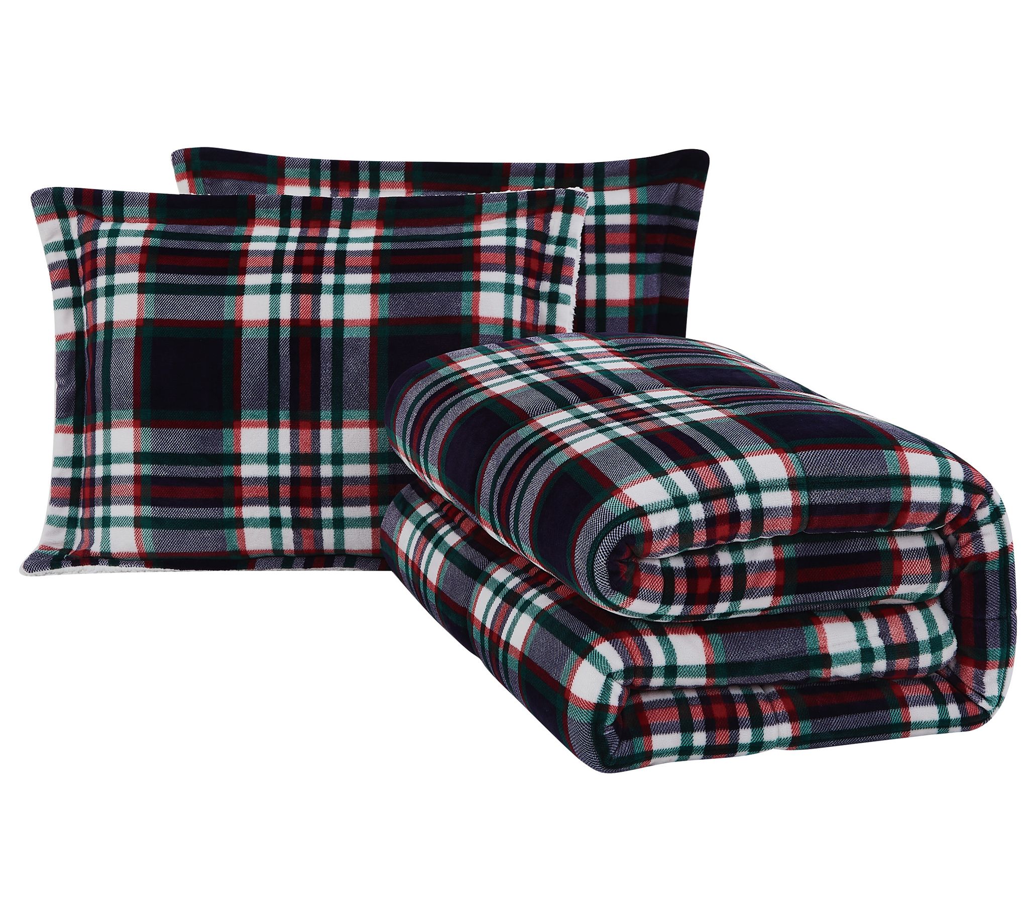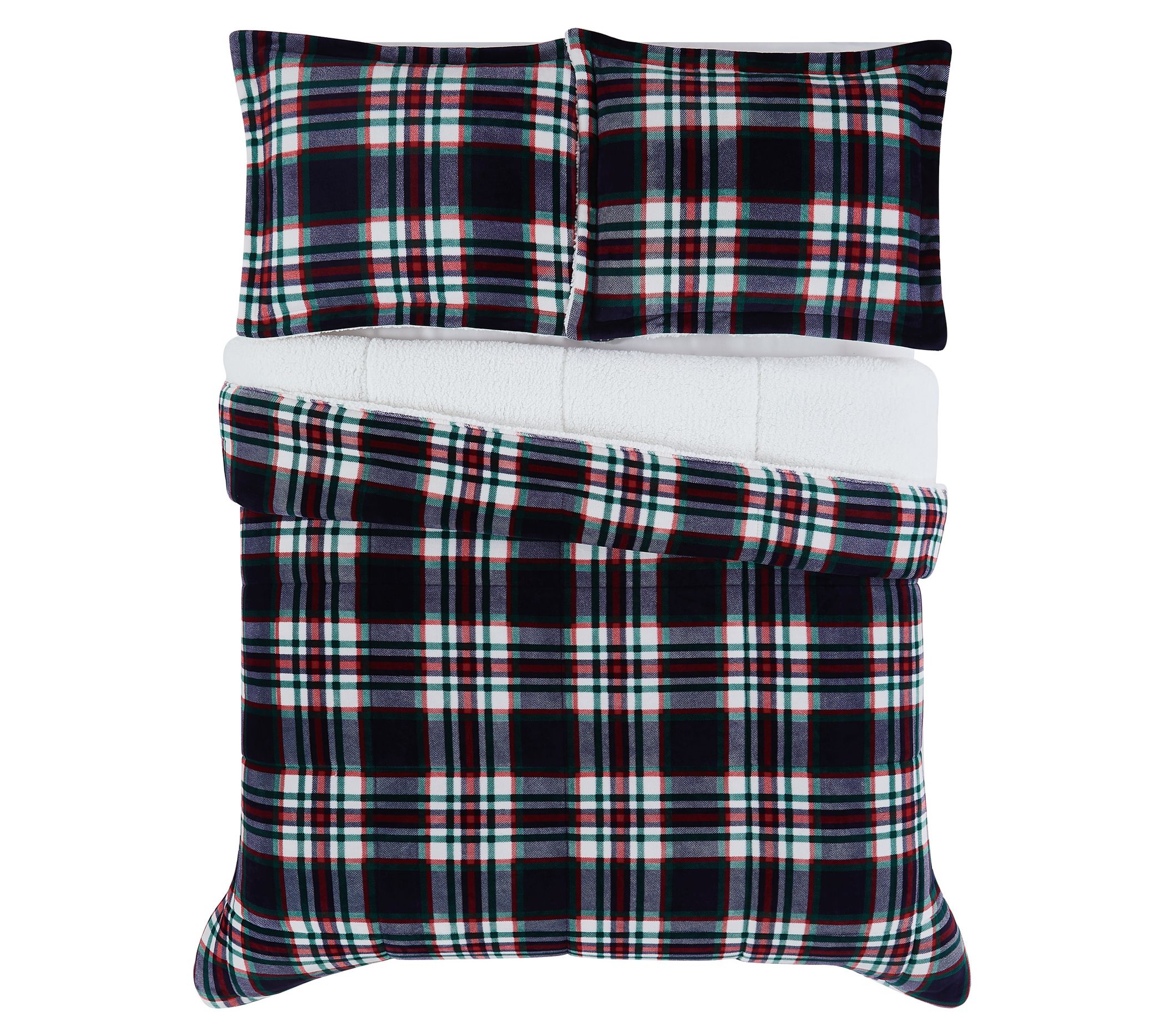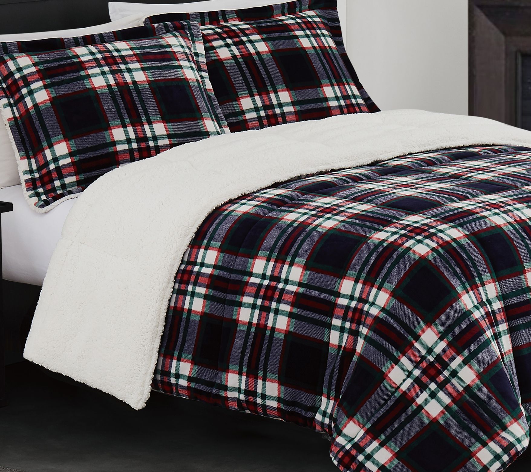 Offering all the cozy comfort of a winter retreat, this plaid comforter set features a faux ultra mink face with a polyester Sherpa back for a lodge-inspired sleep experience. From London Fog.