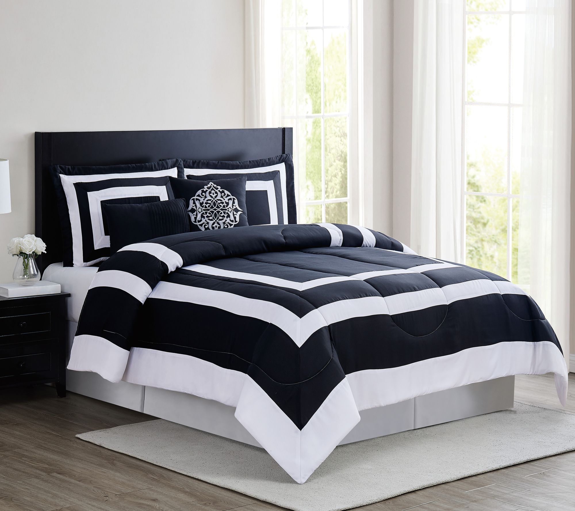Give your bedroom a refresh with this comforter set featuring a classic hotel border frame design. From London Fog.