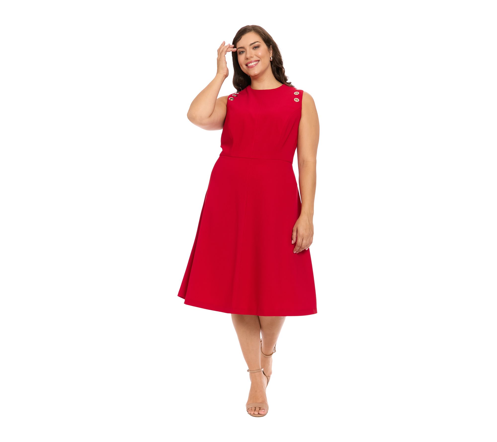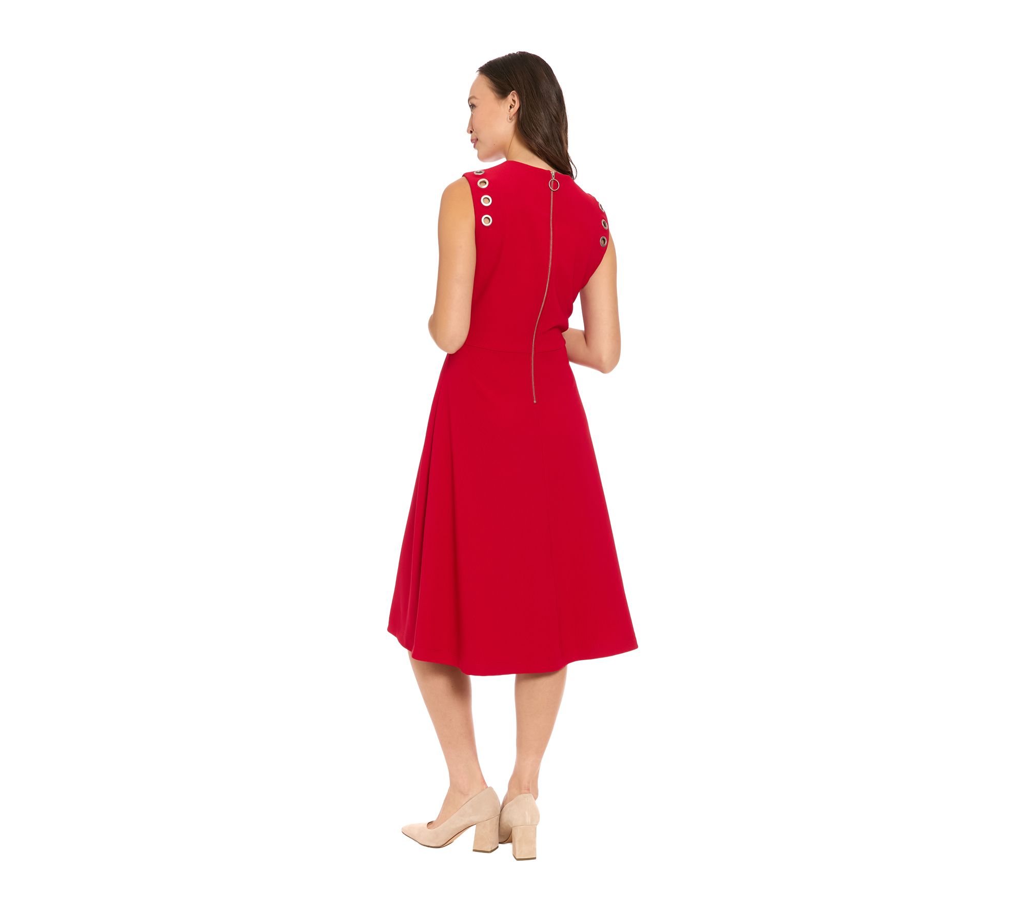 An afternoon lunch date or an evening out feels effortless in this versatile fit-and-flare dress. Soft, stretchy knit fabrication combines with a flattering silhouette that highlights your shape, and polished grommet details add a modern touch -- so you'll look put-together wherever the day takes you. From London Times.