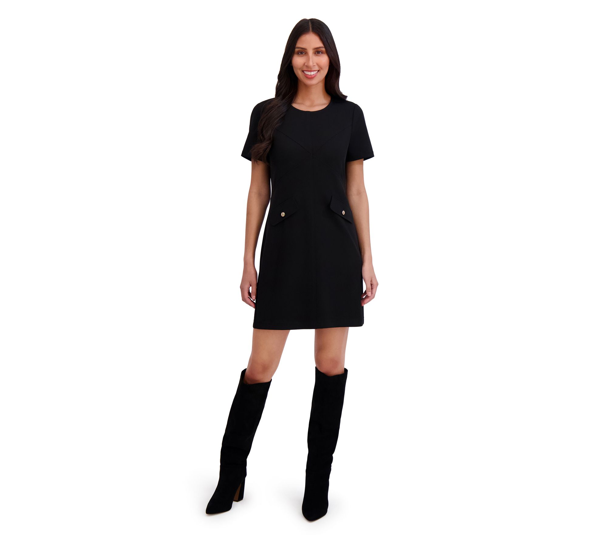 London Times Short Sleeve Mini Dress with Pockets