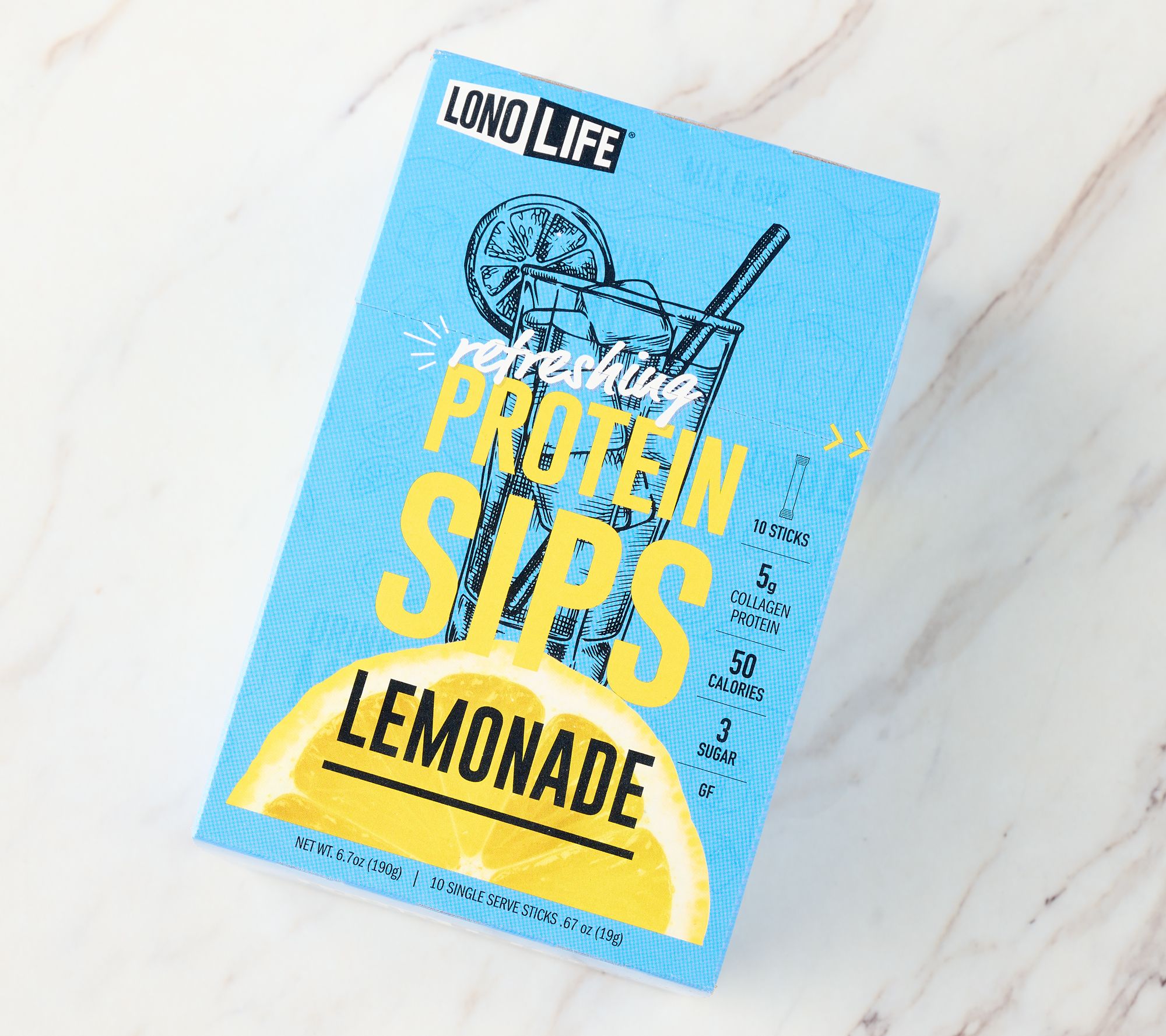 Sunny afternoons or quick breaks get a thirst-quenching upgrade when you shake up a glass of tangy, protein-packed lemonade from LonoLife. Squirrel away a stick in your gym bag, a few sticks for road trips, or in your handbag for desk-side sipping -- real lemon juice and collagen protein let you refresh and recharge anytime. Add to cold water, stir well, and enjoy bright citrus flavor that powers you through your busiest days. From LonoLife.