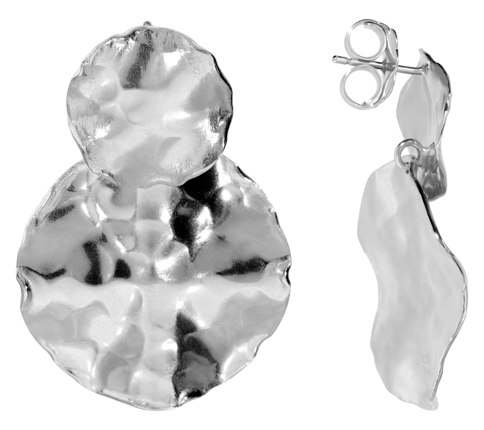 Bold style meets Italian artistry with these hammered round disc earrings, finished in your choice of sterling silver or 18K yellow gold plating. The double-disc design brings dynamic movement, catching the light with every turn for an effortlessly elevated look -- from work meetings to dinner out. From Louis Dell'Olio.