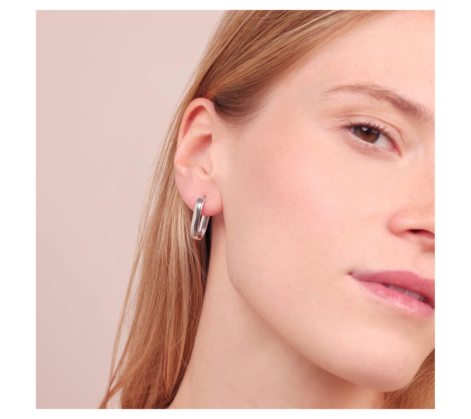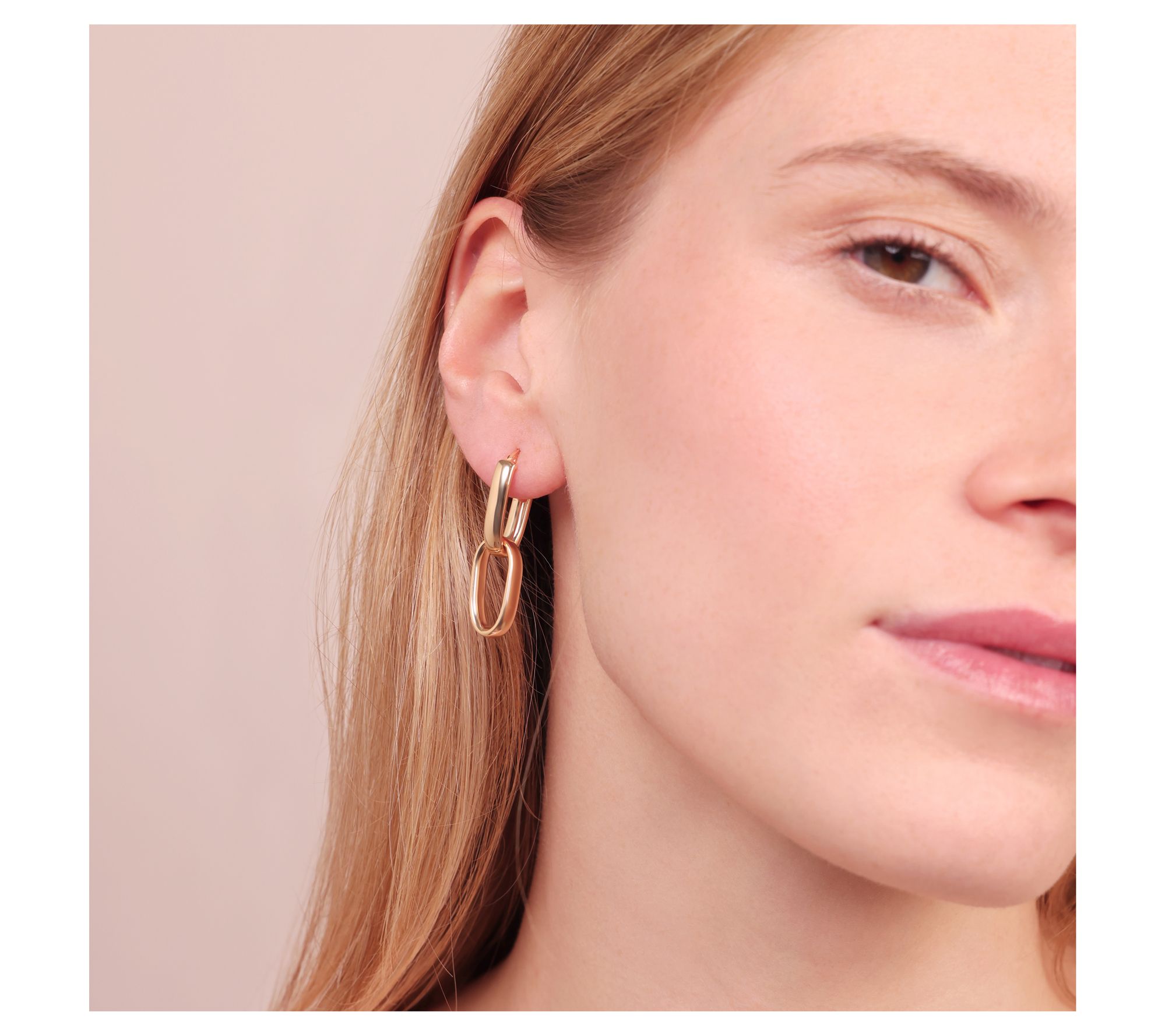• Double oval dangle design; one removable hoop for versatile wear; polished finish