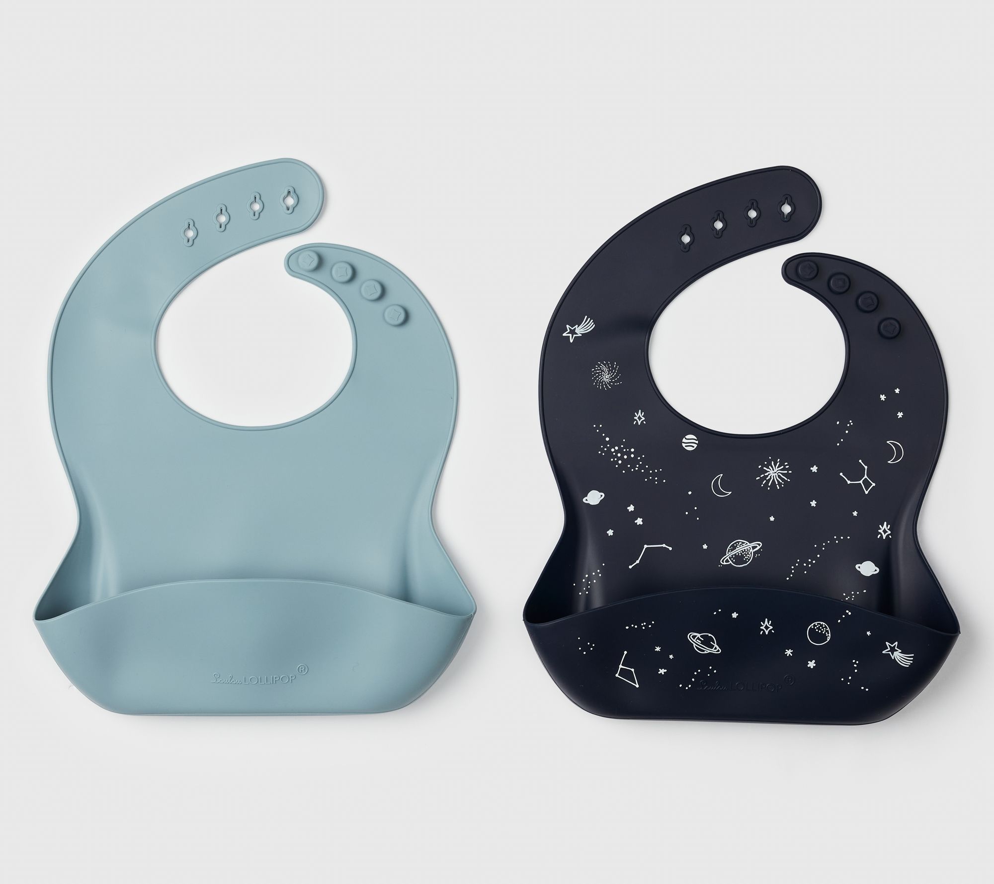 • Includes two silicone bibs