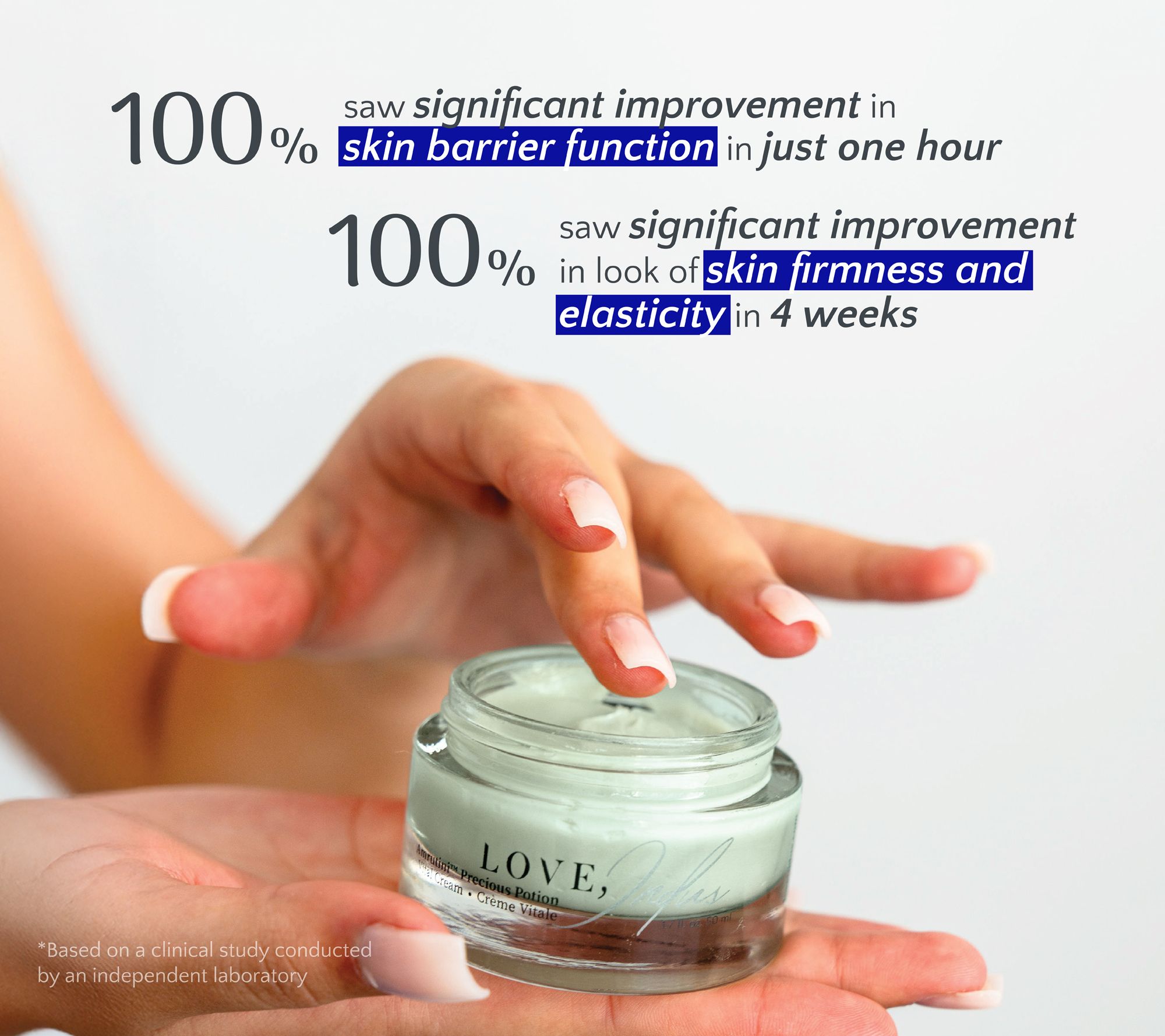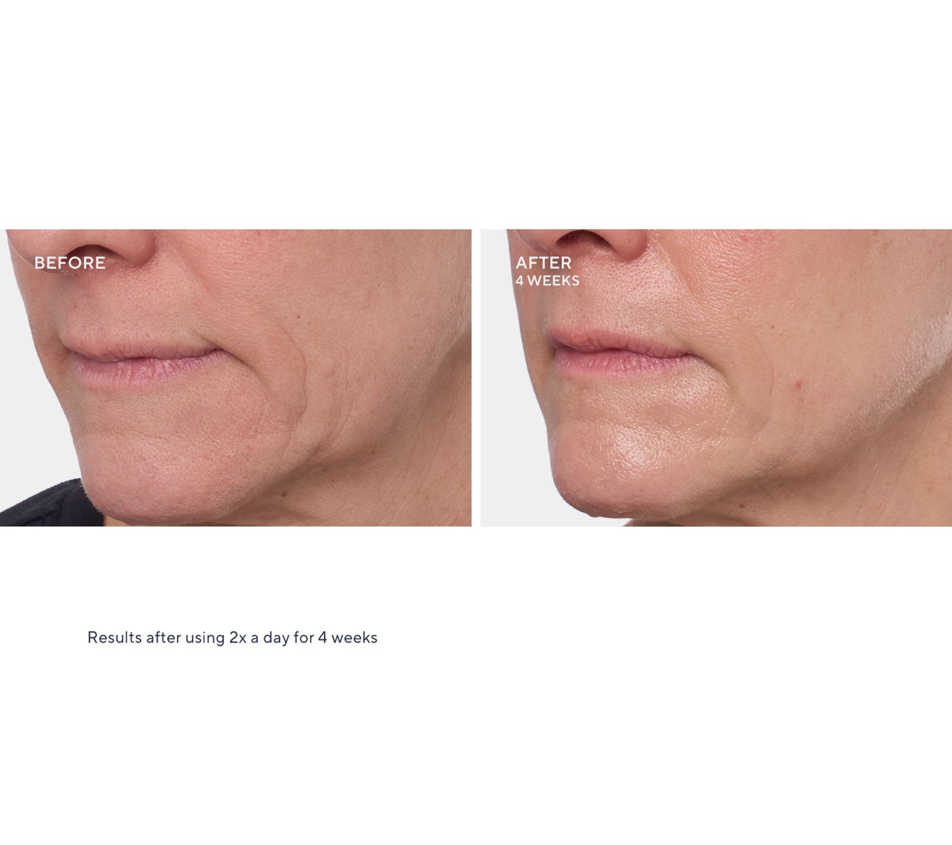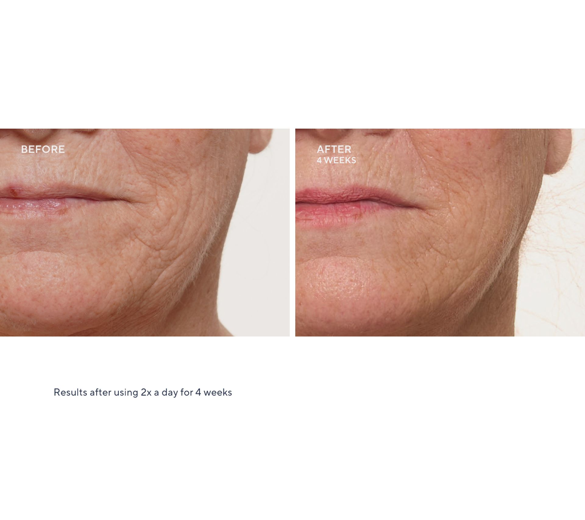 In a consumer perception survey of participants after using 2x a day for 14 days: 100% agreed they saw an improvement in the look of skin texture 100% agreed they saw an improvement in the look of skin softness 100% agreed their skin hydration improved 100% agreed they saw an improvement in the look of firmness and skin elasticity 100% agreed there was a reduction in the appearance of facial lines, creases, and crow's feet wrinkles