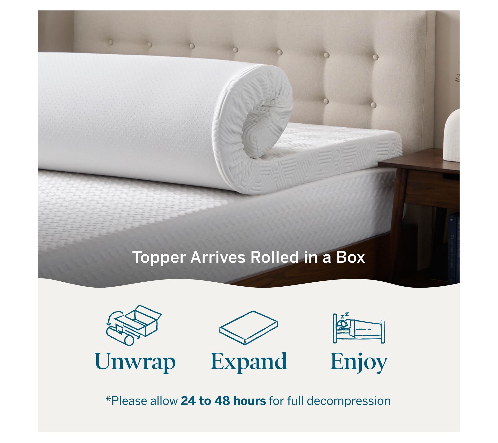 • Includes mattress topper with removable cover