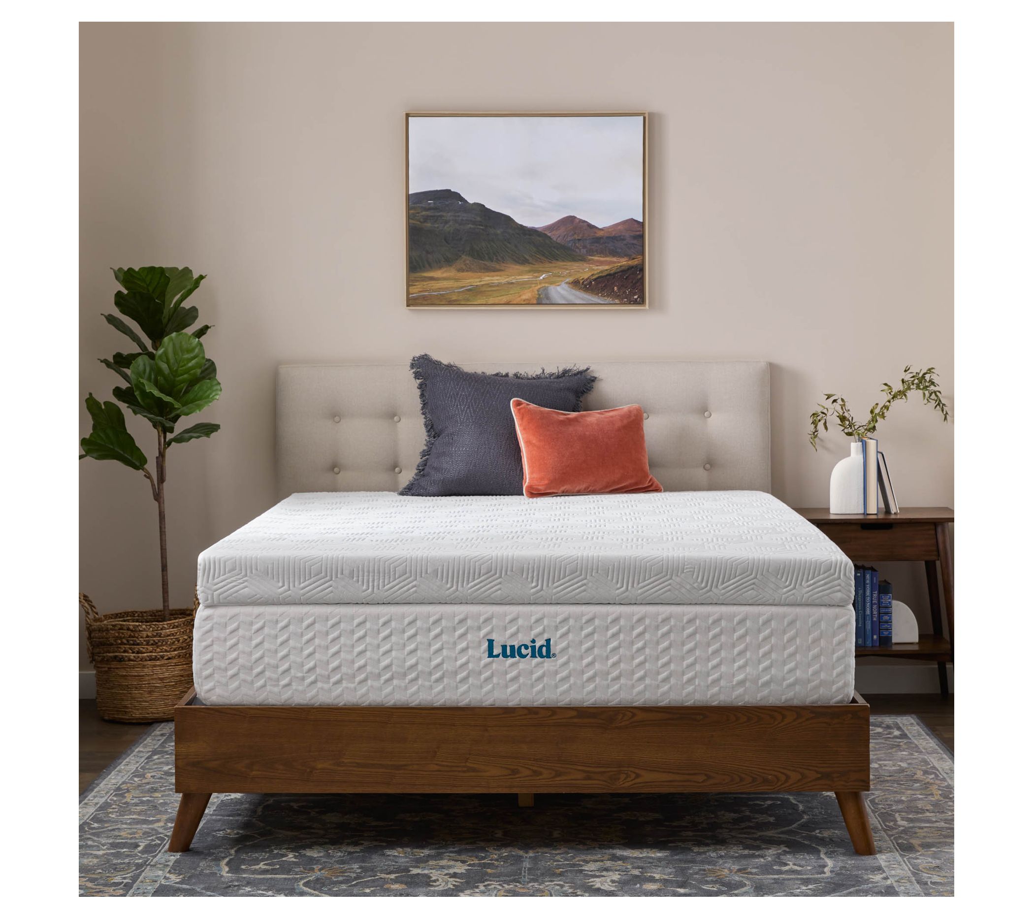 Indulge in luxurious comfort with the Lucid bamboo and gel memory foam mattress topper. This innovative topper features plush memory foam infused with cooling gel, ensuring you stay comfortable all night long, while the bamboo charcoal infusion adds a touch of luxury. From Lucid.