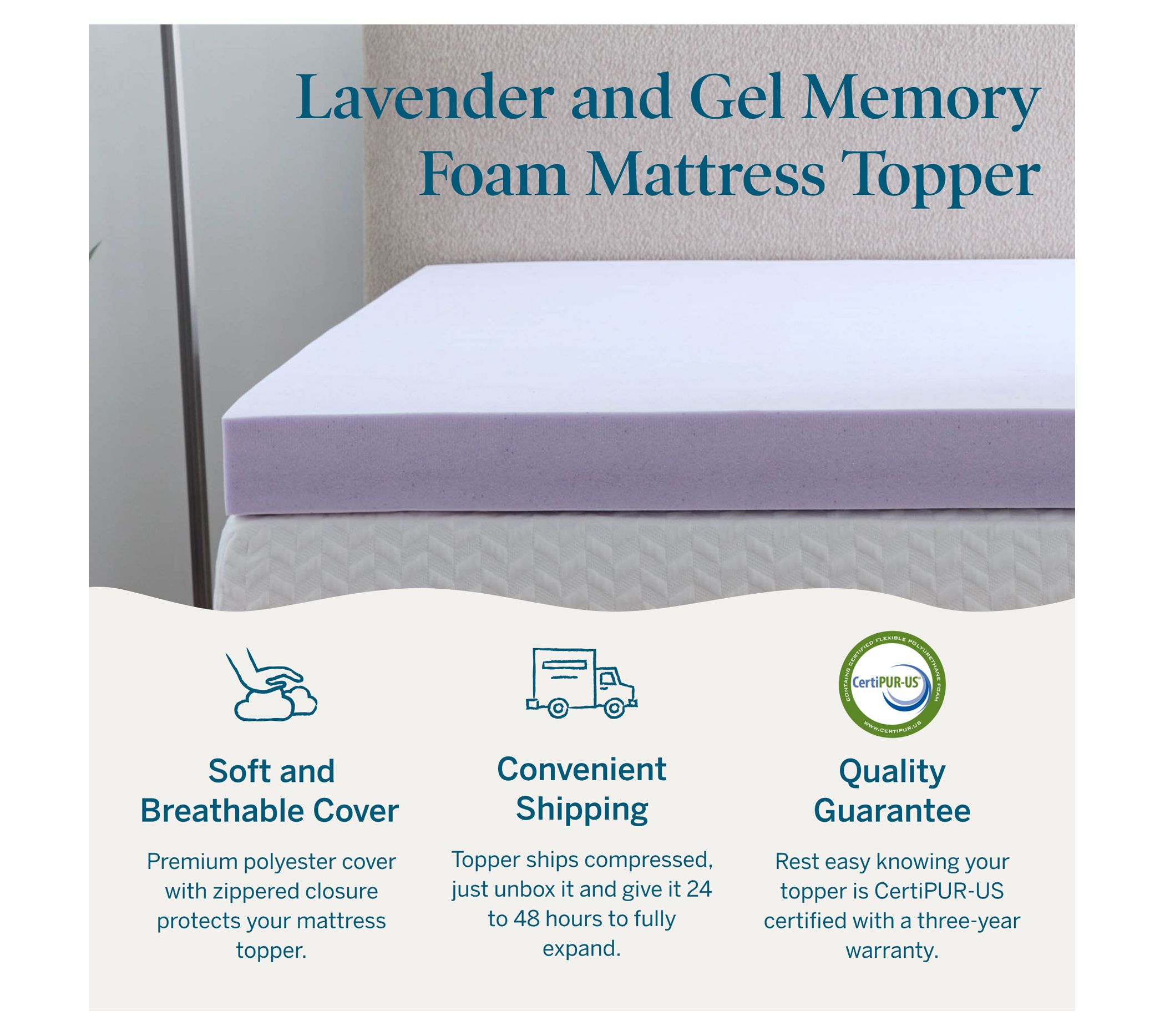 Lucid 4" Lavender and Gel Memory Foam Mattress Topper-Twin XL