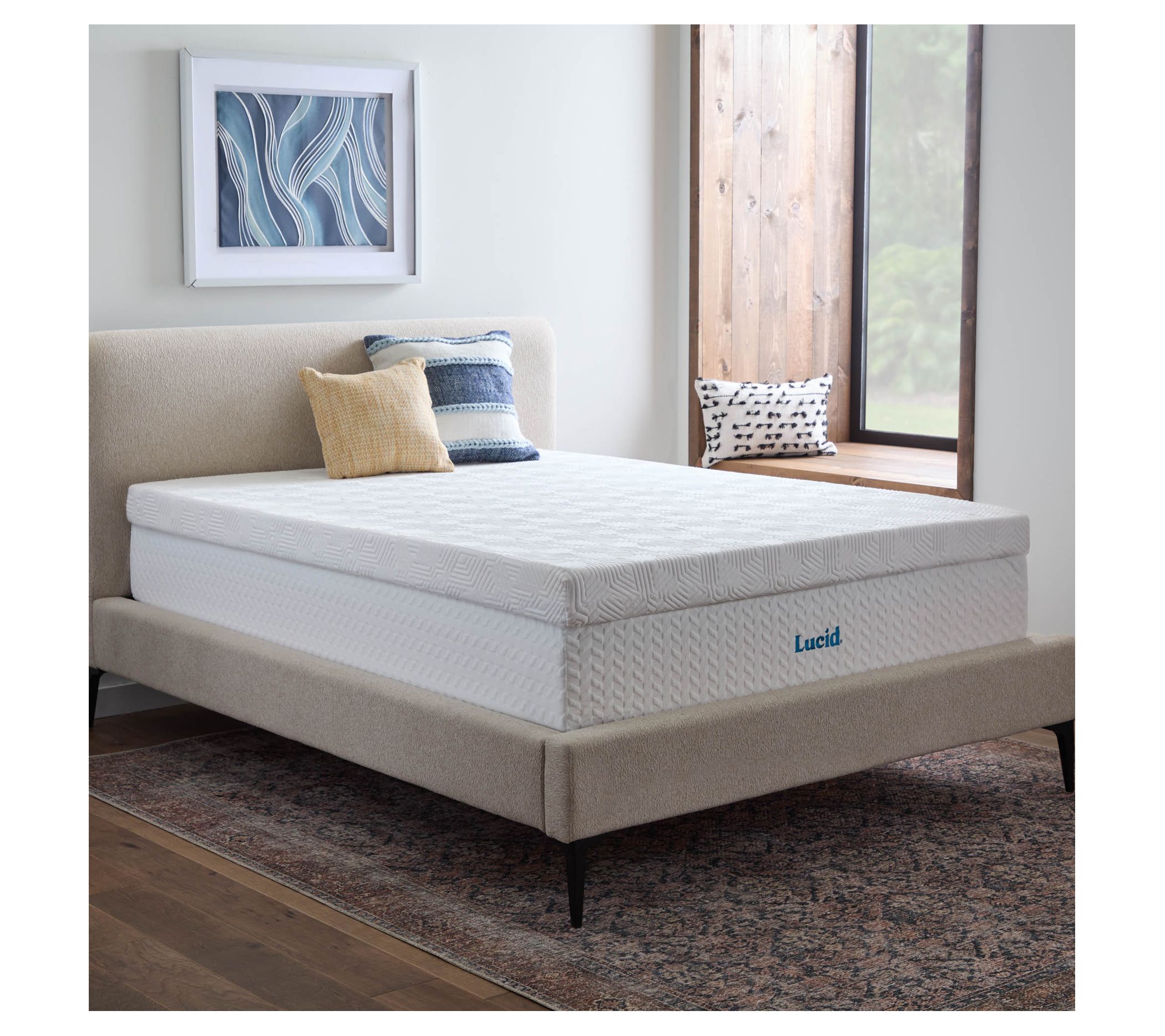 Indulge in luxurious comfort with the Lucid lavender and gel memory foam mattress topper. This innovative topper features plush memory foam infused with cooling gel, ensuring you stay comfortable all night long, while the lavender infusion adds a touch of luxury. From Lucid.