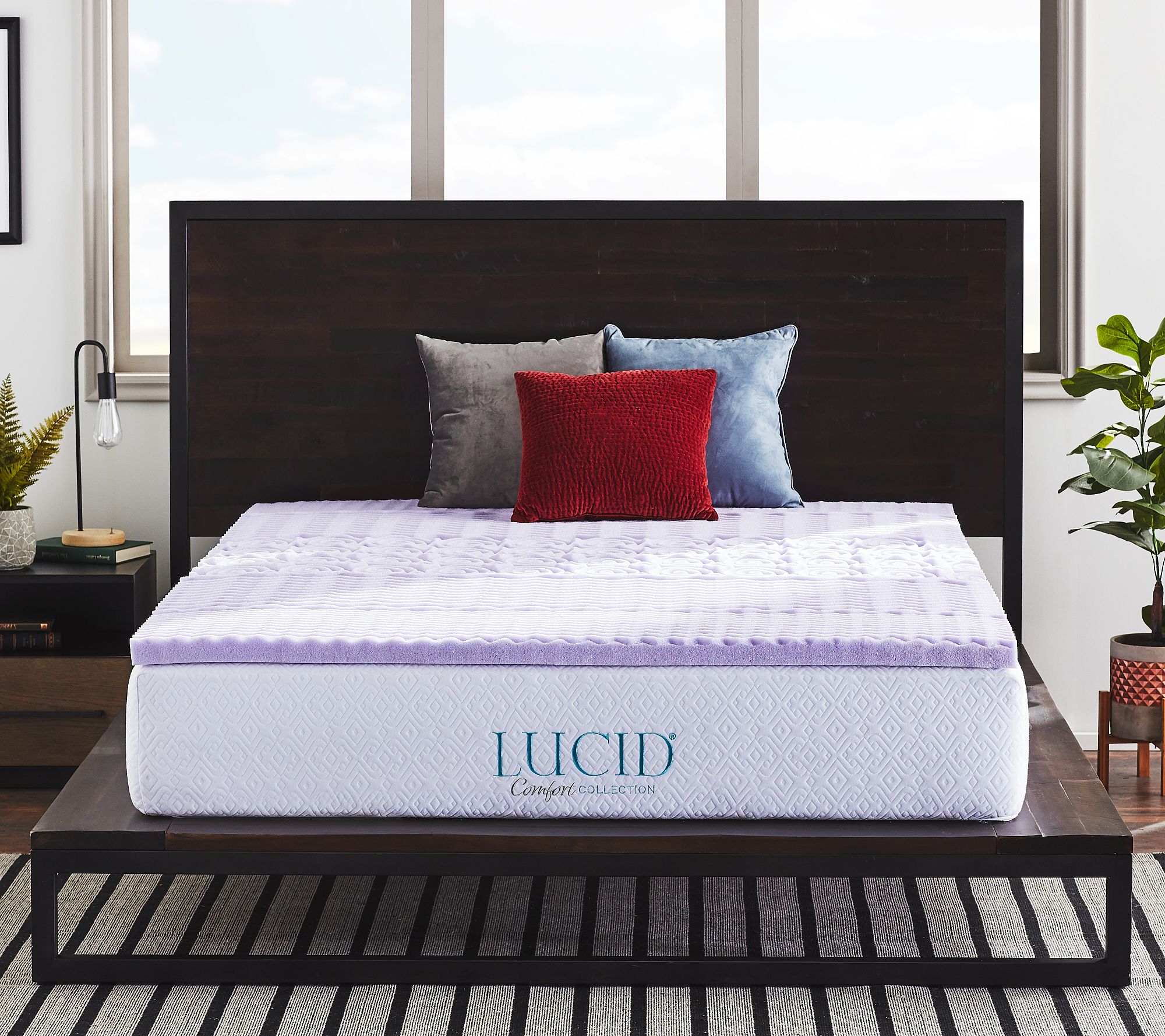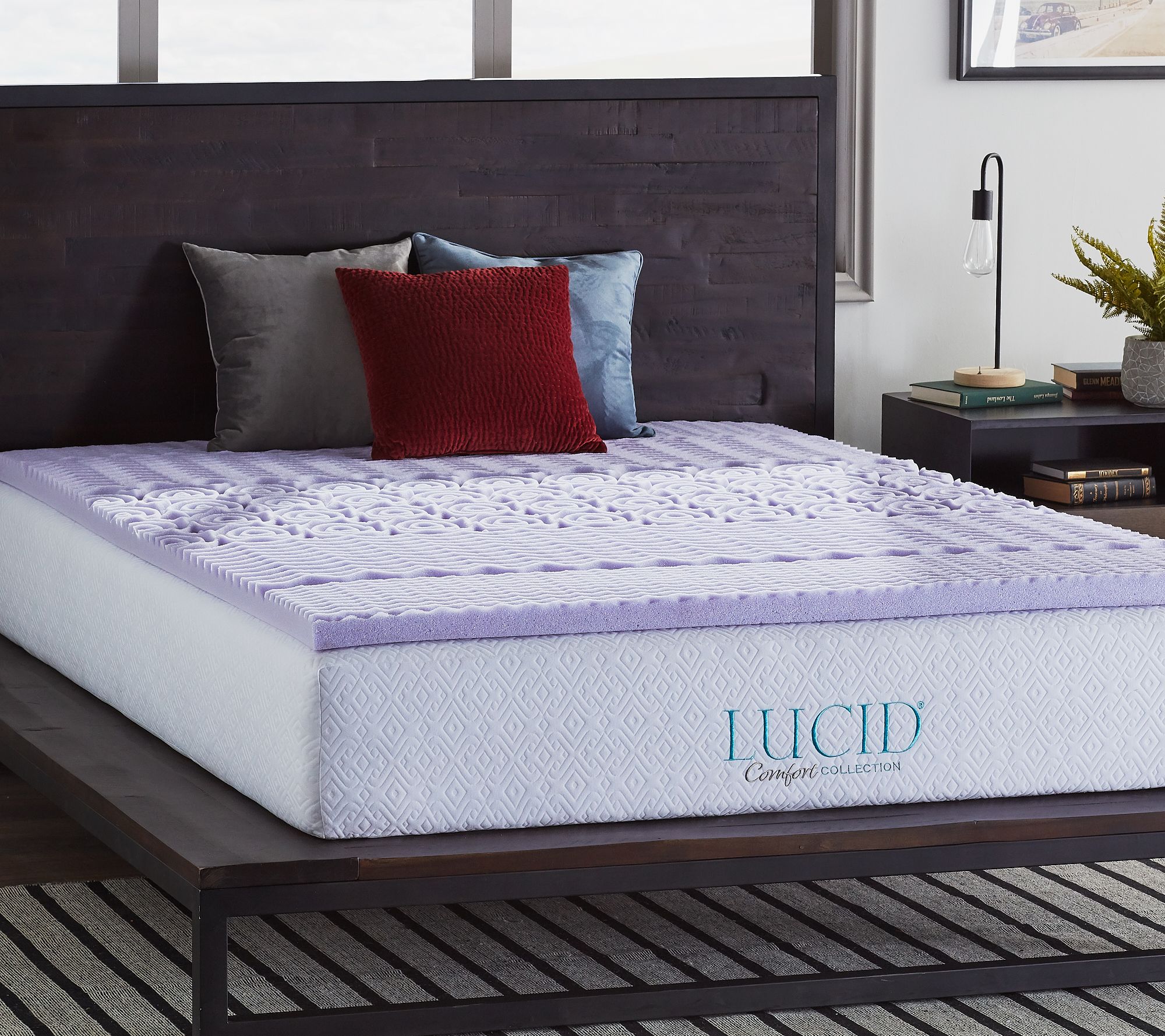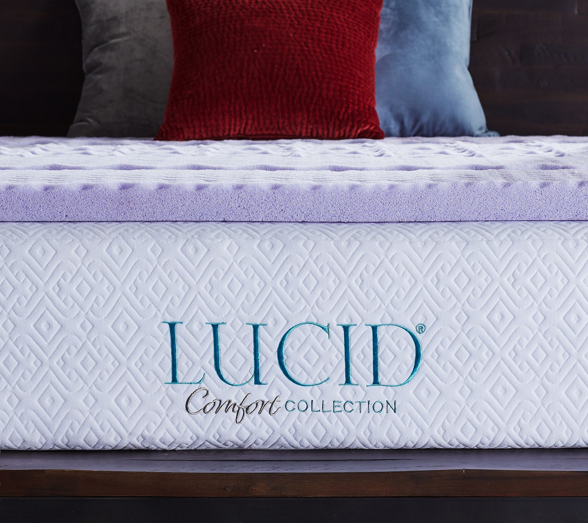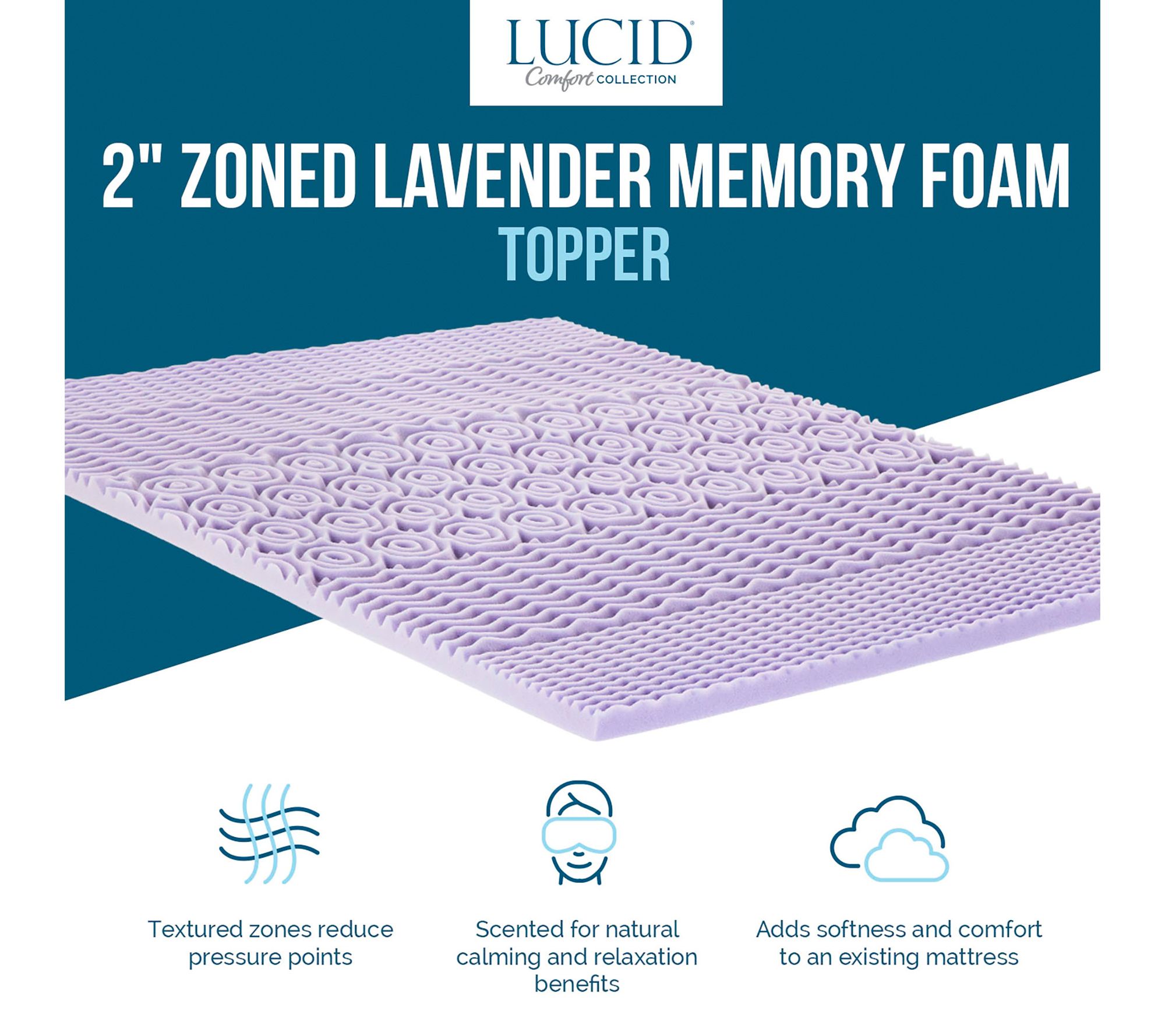 Close your eyes, breathe deeply, and drift off into a lavender-infused dreamland aboard Lucid's memory foam mattress topper, featuring five zones of texture for comfort at every turn. From Lucid.